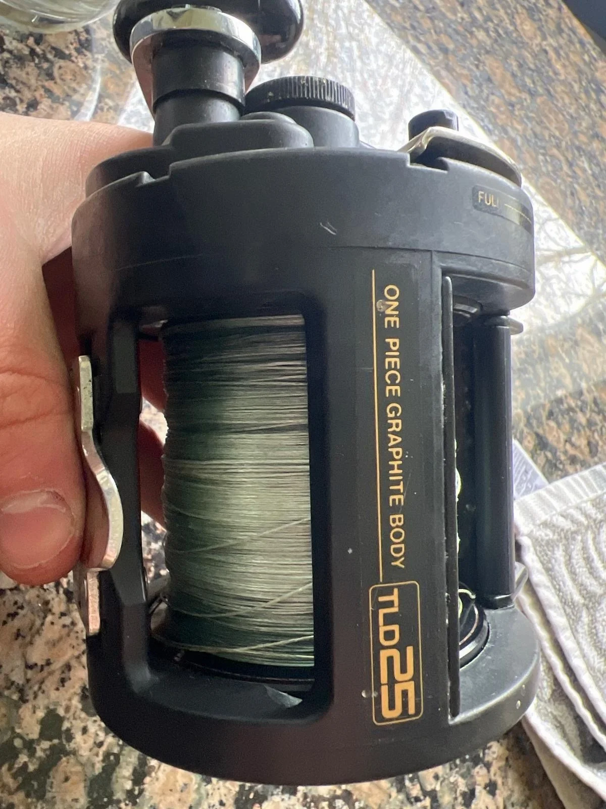 Used boat fishing combo: Shimano TLD25 lever drag reel (3.6:1, spooled, good working order) + Silstar Power Tip Boat rod 7.5ft (2.20m) 30lb line rating with Fuji reel seat and solid power tip. Functional used condition with some cosmetic wear (see photos). Ideal for boat bottom fishing or light trolling.