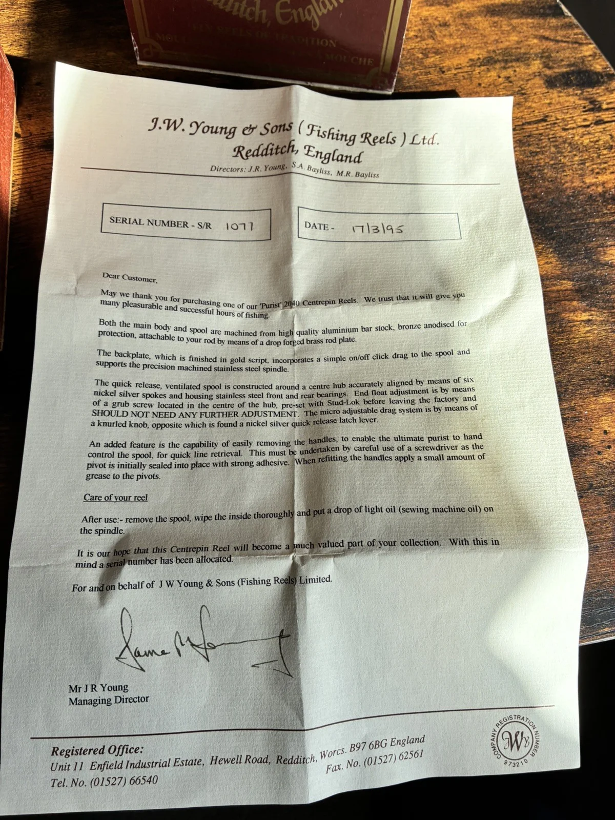 Gorgeous JW Youngs Purist 2040 centrepin fishing reel 4.5" boxed etc