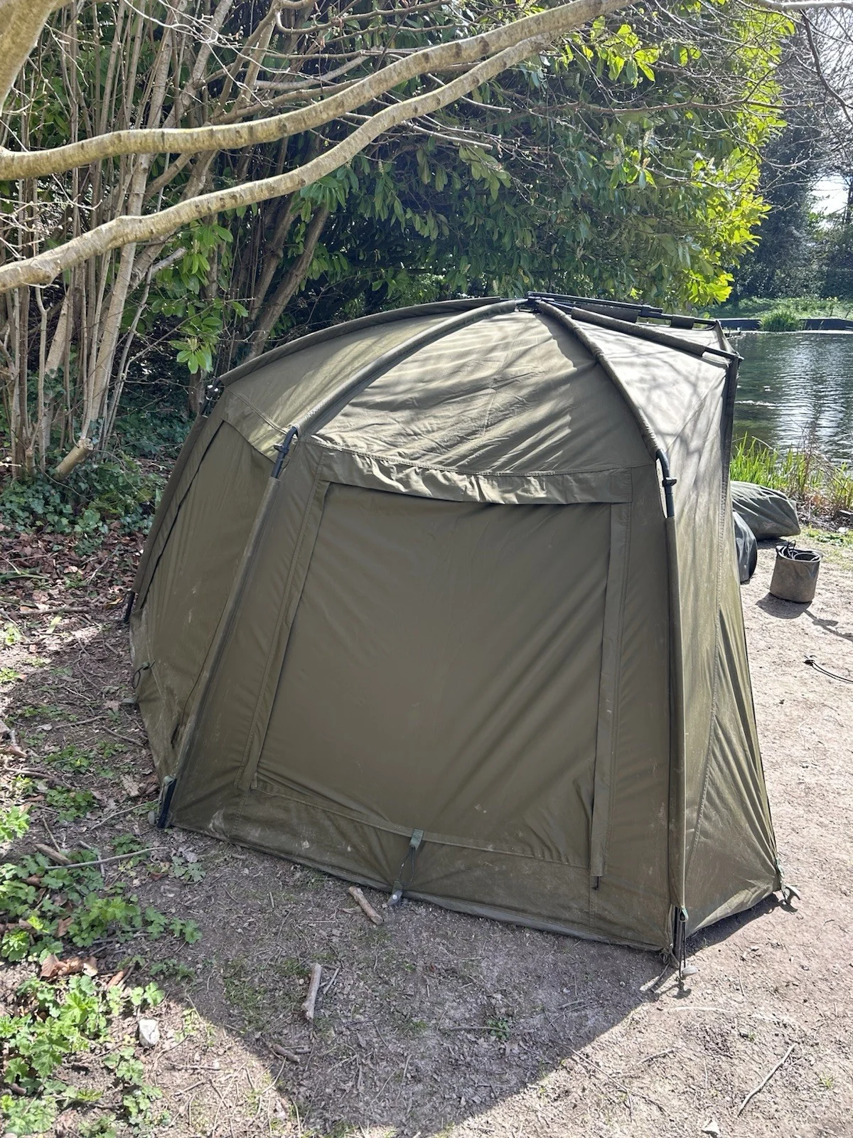 Thanks for looking at my Trakker 150 EV.I want to be as honest as possible, this is in a used condition, everything works as it should, does not leak and is a fantastic bivvy, there’s plenty of life in it.Also included is the skull cap and skull cap wrap, the wrap is like new.The groundsheet has been jet washed.I don’t expect top money so please don’t expect a Rolls Royce.Collection from Southampton, SO52 area.If you want to organise a courier at your expense you are welcome to do so.I can deliver locally if necessary.Thanks for looking.