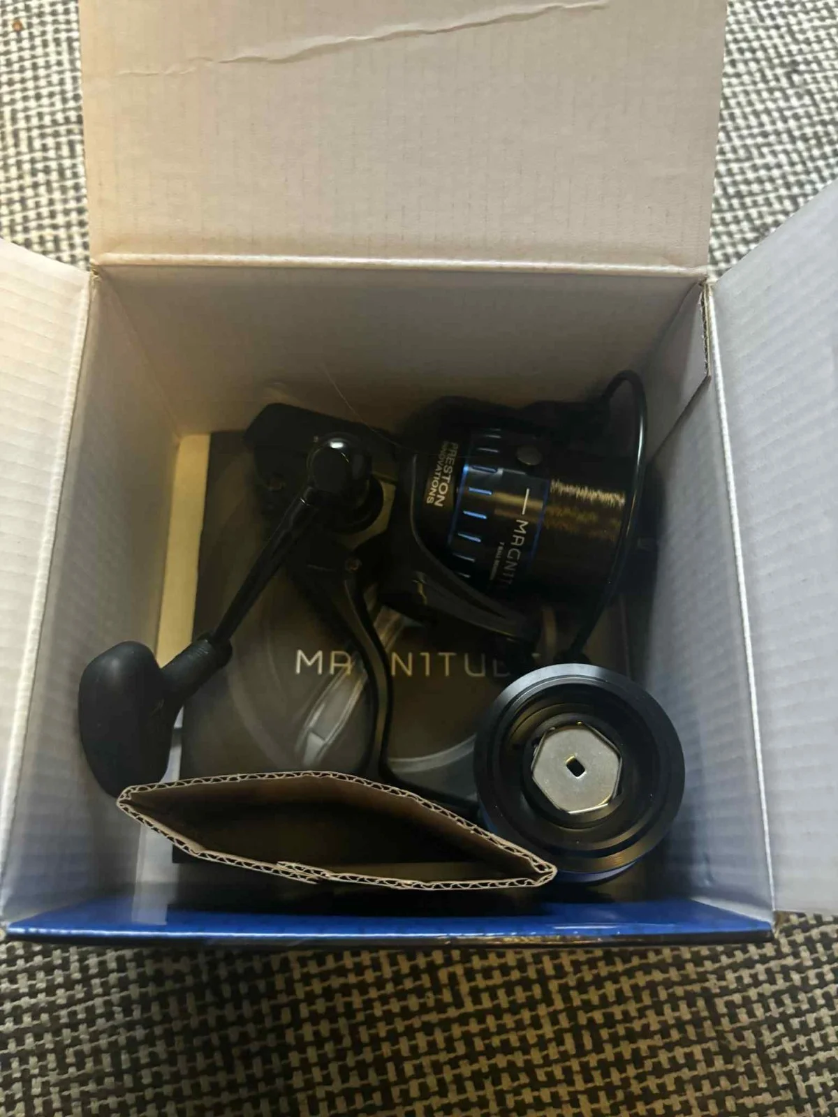 hi welcome to my auction I have for sale my Preston magnitude 320 reel very good condition still in box any questions please ask