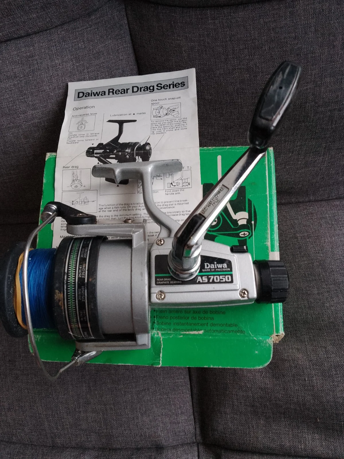 A Daiwa AS 7050 Skirted Spool Spinning Reel, in original box with instructions.One touch folding handle; rear drag system; push button release spool.Thanks for looking; please see the photos and my other listings; please make an offerof £12 or more.