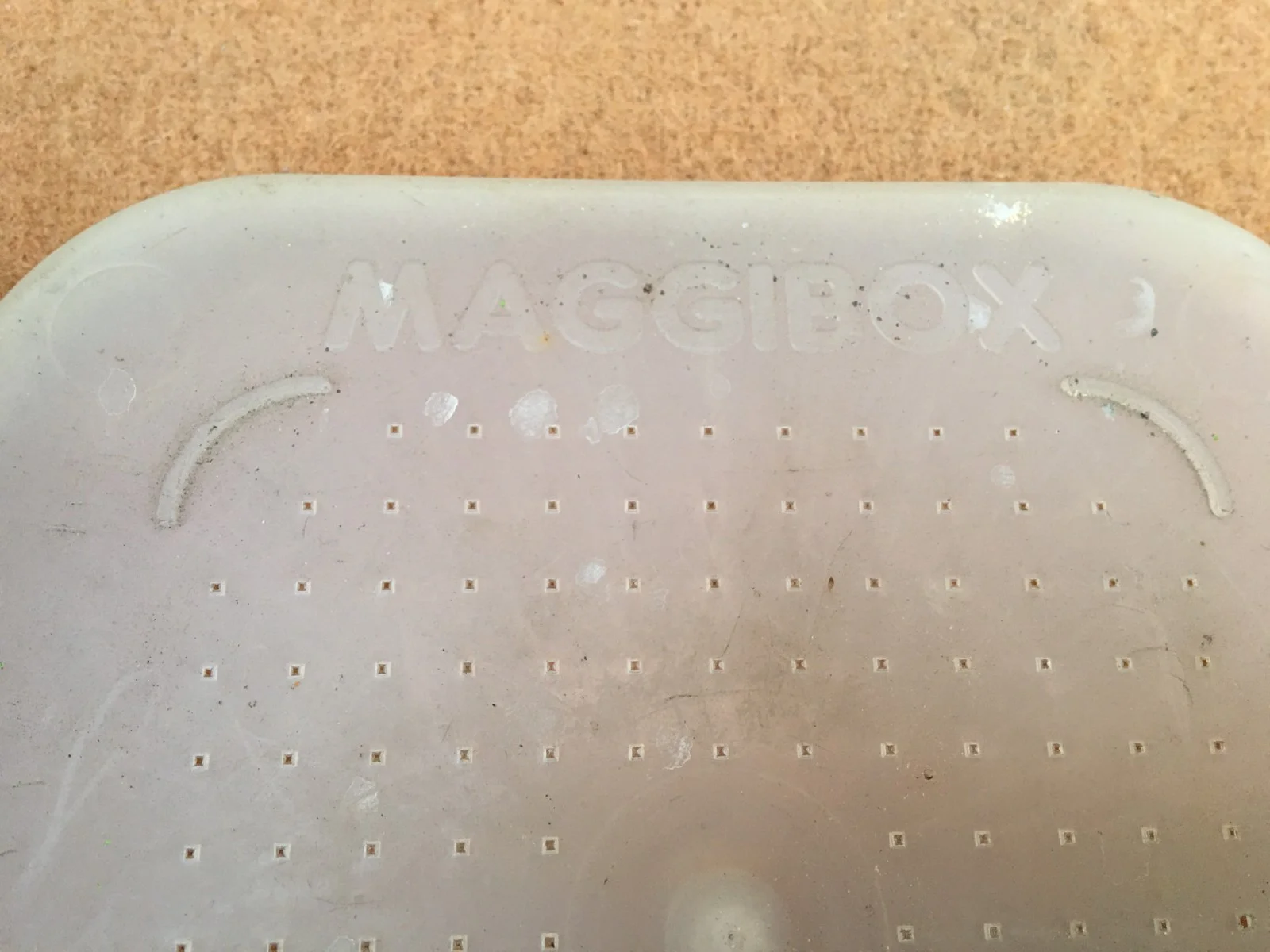 Four retro plastic bait/maggot boxes, 2 x Maggibox, Marco. Middy