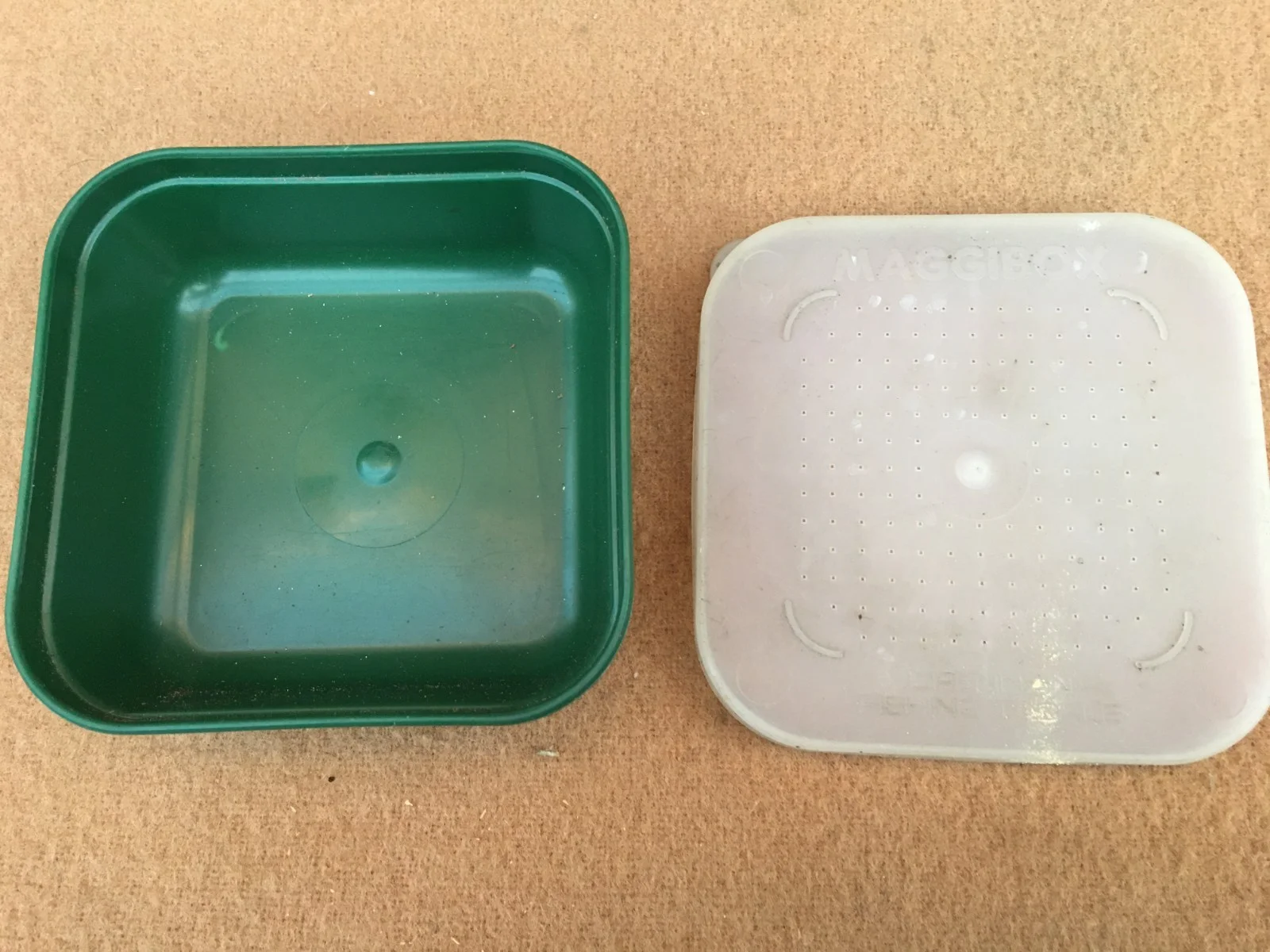 These are Four retro plastic bait/maggot boxes, 2 x Maggibox, 1 Marco & 1Middy.They have just been dragged out of the back of a shed after 30 years so need cleaning!!They are in reasonable condition though the Marco does have a split in the base(See photos)