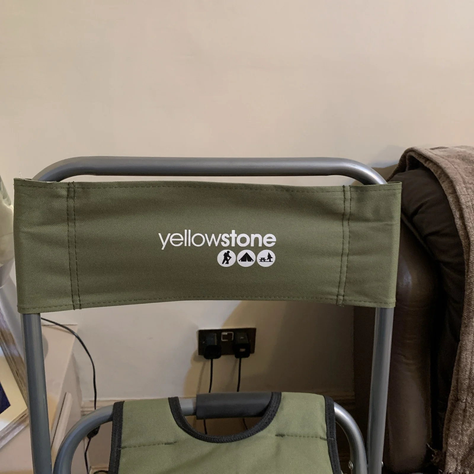The Yellowstone folding chair with rucksack backrest is a lightweight and durable outdoor seating option, perfect for unisex use. Its water repellent feature makes it suitable for use in various weather conditions. The chair is fully assembled and designed for easy transportation and storage, with a rucksack backrest providing added convenience. With a compact size of 27 inches in height, 11.81 inches in length, and 16 inches in width, this chair is ideal for outdoor activities and camping trips. The green colour adds a stylish touch to this practical and functional piece of furniture. brilliant for camping fishing shooting any outdoor activities. Like new only use ones.