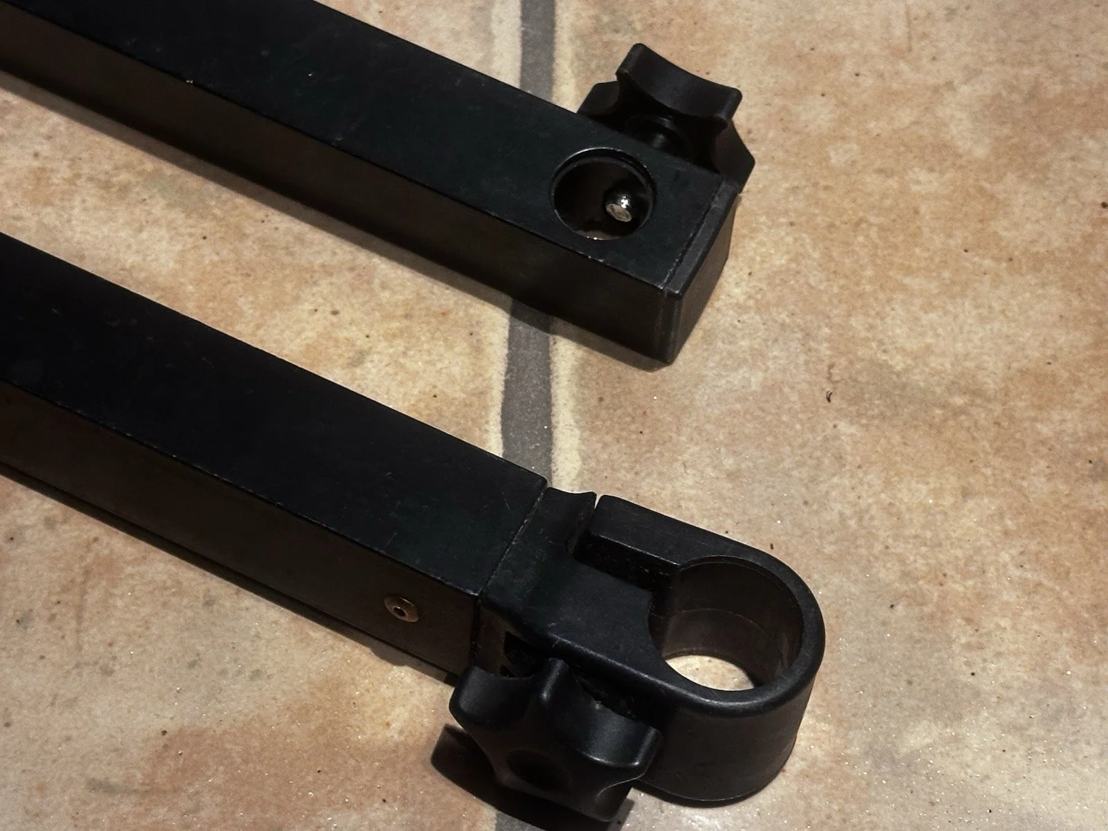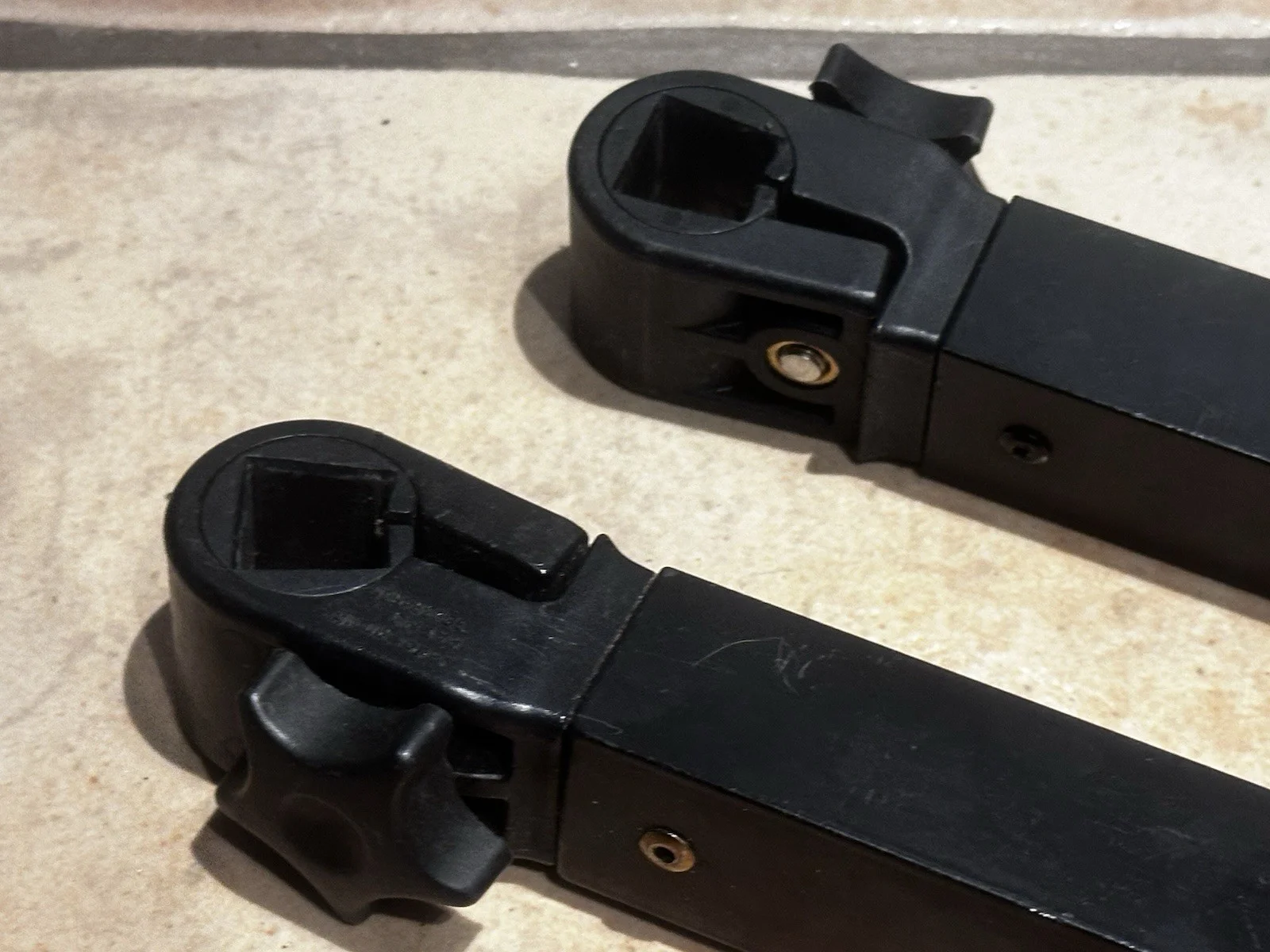 Pair of Preston innovations accessory arms to 13” in length.And 30mm legs attachment knuckle and 19mm square leg insert.