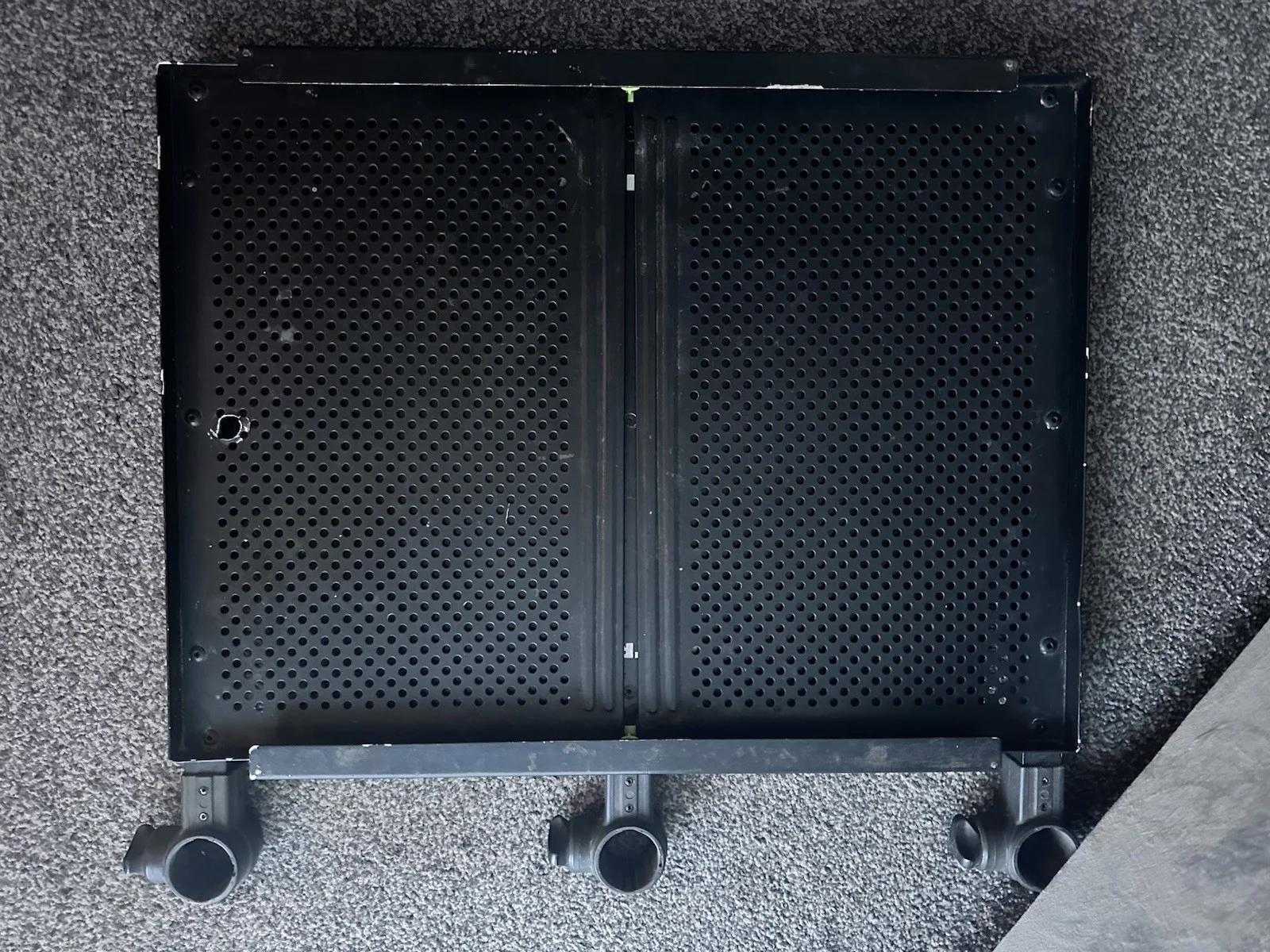 Here we have a Matrix XL extending side tray .PLEASE NOTE THIS TRAY HAS NO BRACKETS AT THE BACK FOR LEGS AND DOES NOT COME WITH LEGS .I have used a Preston support arm . There are no sharp edges due to being capped ( see pics ) , there is a small hole in the tray seen also in pics this does not effect the working of the tray . Being sold in used condition but plenty of life left init .Fits 36mm legs Relisting due to time waster .Starting the bid at £10 . Any questions please feel free to message me Happy bidding and thanks for looking .