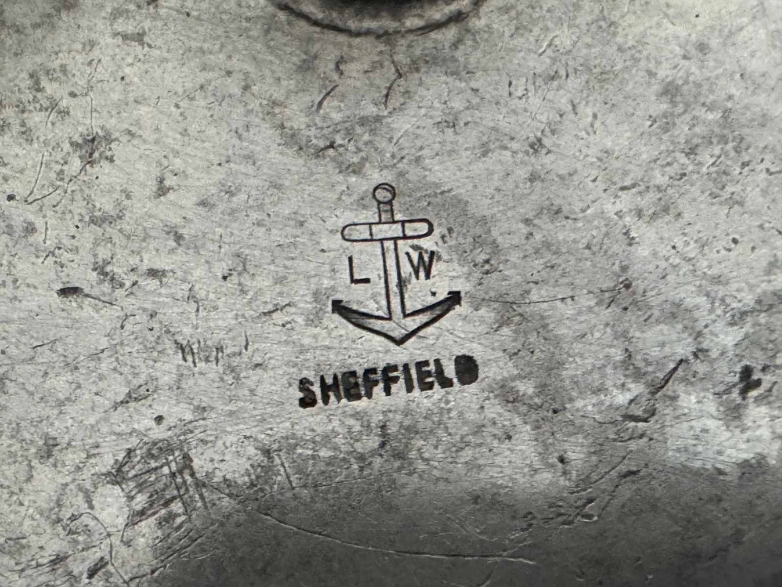 Here we have a Lee & Wigfull of Sheffield 4 inch Centrepin Reel, 1930's England, Lovely Quality.Really nice float fishing reel, one and one eighth inches in overall depth, ideal for trotting the river. Made in Sheffield by a high quality manufacturer. Lee & Wigfull were primarily makers of silver and electroplated cutlery and tableware from 1871 until their final demise in 1968. Uniquely for Sheffield they used an Anchor trademark (usually this was used as an Assay mark for Birmingham made Silver & Gold) with L&W ether side.At some point in the 1930's they made a selection of quality centrepin fishing reels. This is one of the best I have seen, made in in Alloy & Brass with lightly crazed Xylonite handles. This reel is working very well, having been cleaned and oiled. There is an on/off check operated by a sliding button mounted on the backplate. All in all a lovely classic centrepin reel in lovely condition to use as intended, see photos.Any International buyers, please contact me for accurate shipping charges. The quoted amount is for Worldwide and Europe is still fortunately a little less expensive.