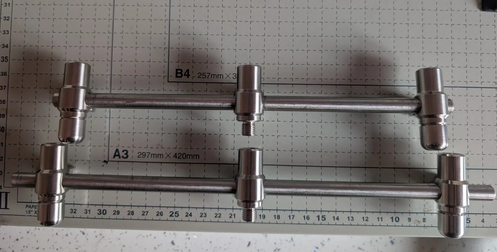 Whilst advertised as used, these buzz bars have never been used. Having a clear out.3 Rod Std (11.5" & 9.5")The bars that do it ALL!The idea is simple, an adjustable buzzer bar, with removable fittings, for maximum flexibility and ease of use.Each pair of bars is manufactured from high-grade 316 stainless steel and are supplied with 4 thread caps, which enable you to protect the threads whilst not in use.