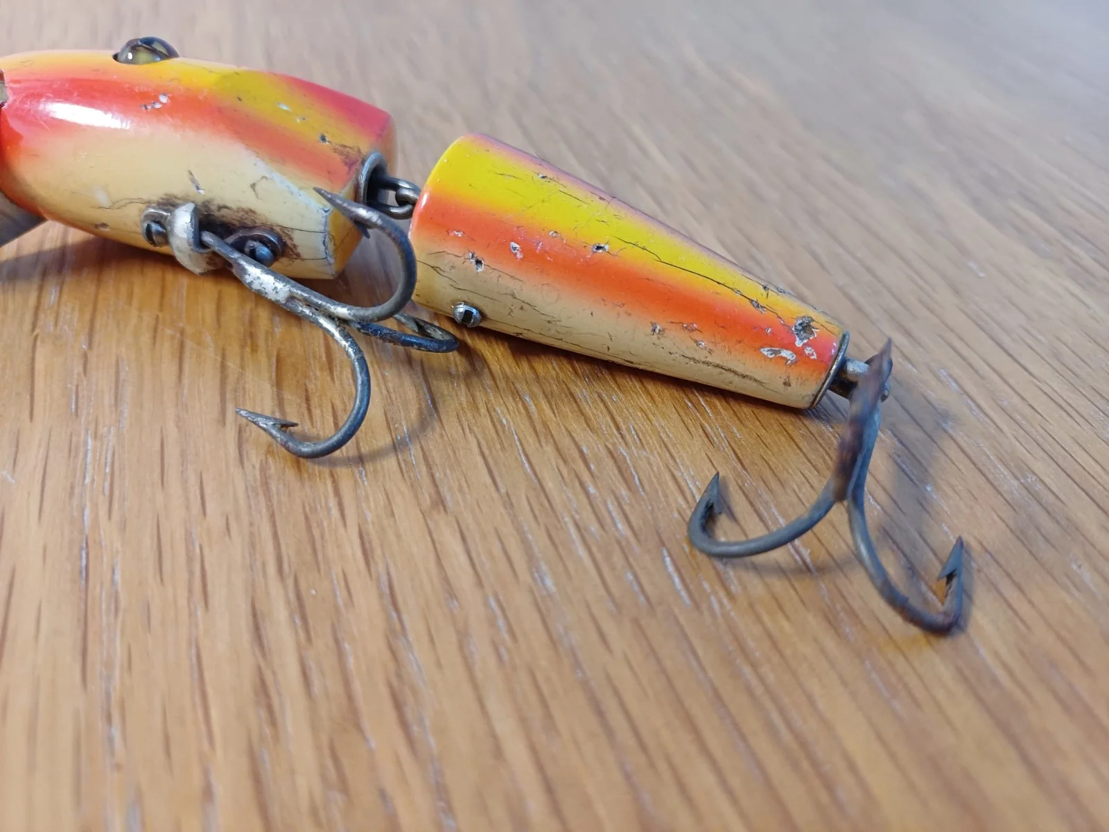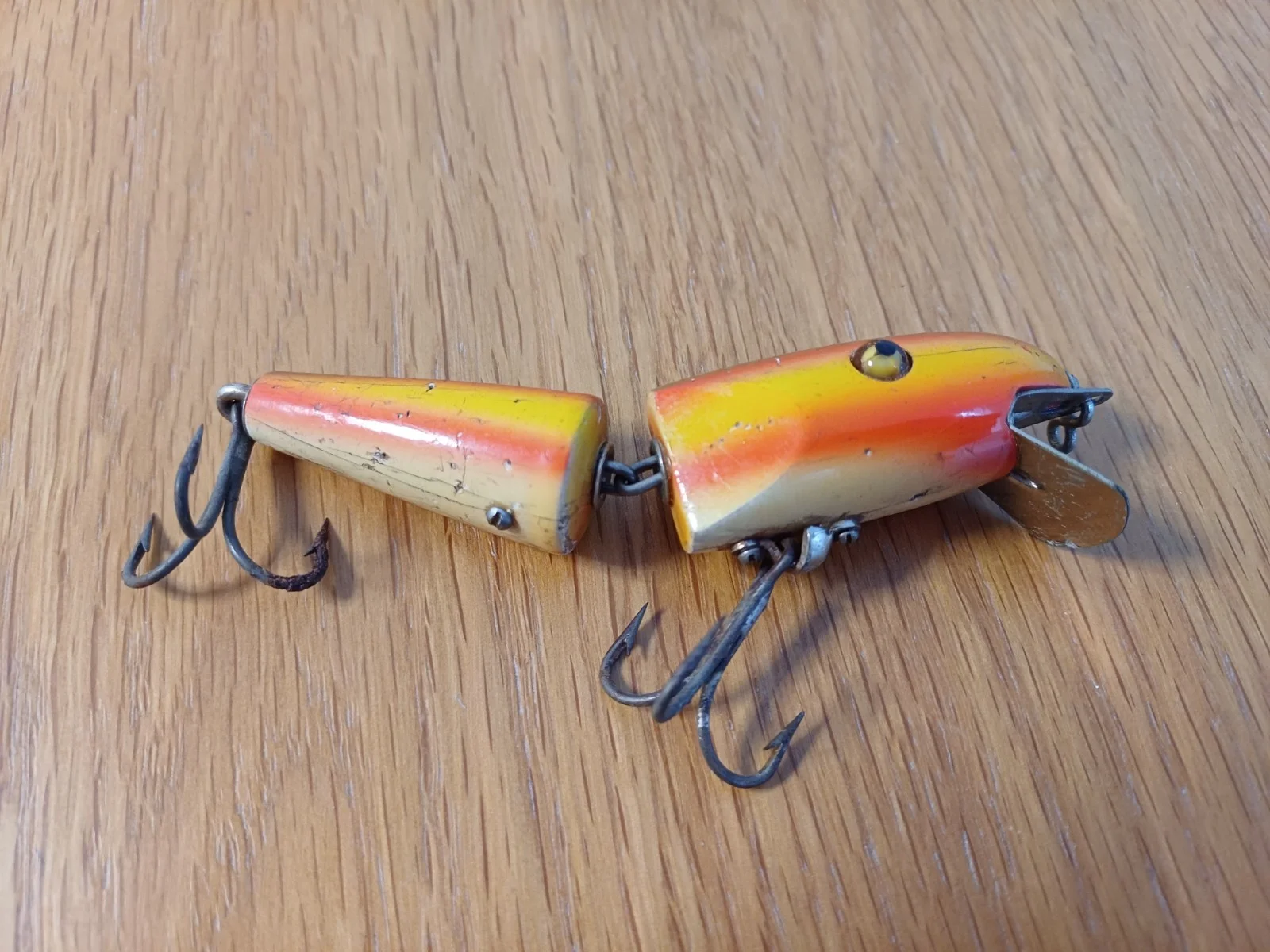 VINTAGE 3.5” PFLEUGER PALOMINE JOINTED PLUG IN ‘RAINBOW COLOURATION’ All purchases are well packed & despatched with Royal Mail tracked service I am always willing to combine postage costs wherever feasible, but please ask/wait for a combined invoice before paying A GREAT LOOKING LURE , WITH WHAT APPEARS TO BE GLASS EYES THERE IS SOME AGE RELATED CRACKING TO THE PAINTWORK I BELIEVE THE RAINBOW COLOURWAY IS SELDOM SEEN , MAKING IT EVEN MORE OF INTEREST TO THE COLLECTOR I AM NOT A BUSINESS SELLER, NOR PROFESS TO BE AN EXPERT, SO PLEASE STUDY THE DETAILED PHOTOS CAREFULLY, TO ASCERTAIN ORIGINALITY, DETAIL, ACCURACY AND CONDITION OF THE ITEM, AS THEY FORM AN INTEGRAL IMPORTANT PART OF THE DESCRIPTION REF