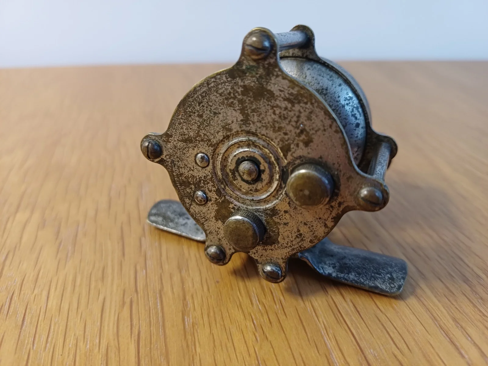 VINTAGE TINY BAIT CASTING REEL-DIAM. 1.5”, 40YD LINE CAPACITY All purchases are well packed & despatched with Royal Mail tracked service I am always willing to combine postage costs wherever feasible, but please ask/wait for a combined invoice before paying APPEARS TO SOME AGE BUT NO MARKINGS APART FROM 40 STAMPED ON REEL FOOT. HAS AN EARLY PILLAR FRAME WITH WORKING HANDLE AND SPOOL ROTATION THE REEL HANDLE HAS A SLIGHT DOWN WARD BEND TO IT (PROBABLY EASILY RECTIFIED?) I AM NOT A BUSINESS SELLER, NOR PROFESS TO BE AN EXPERT, SO PLEASE STUDY THE DETAILED PHOTOS CAREFULLY, TO ASCERTAIN ORIGINALITY, DETAIL, ACCURACY AND CONDITION OF THE ITEM, AS THEY FORM AN INTEGRAL IMPORTANT PART OF THE DESCRIPTION REF