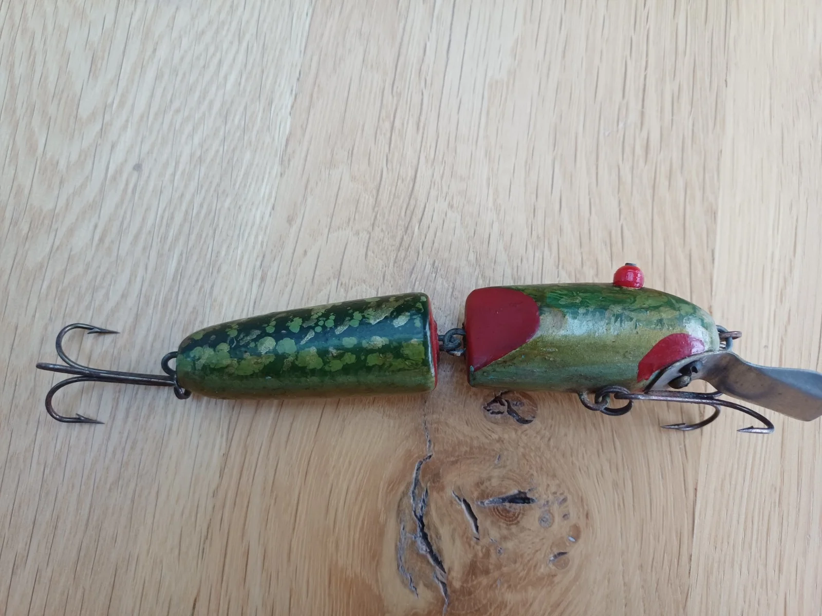 INTERESTING VINTAGE JOINTED PLUG LURE WITH BULBOUS EYES