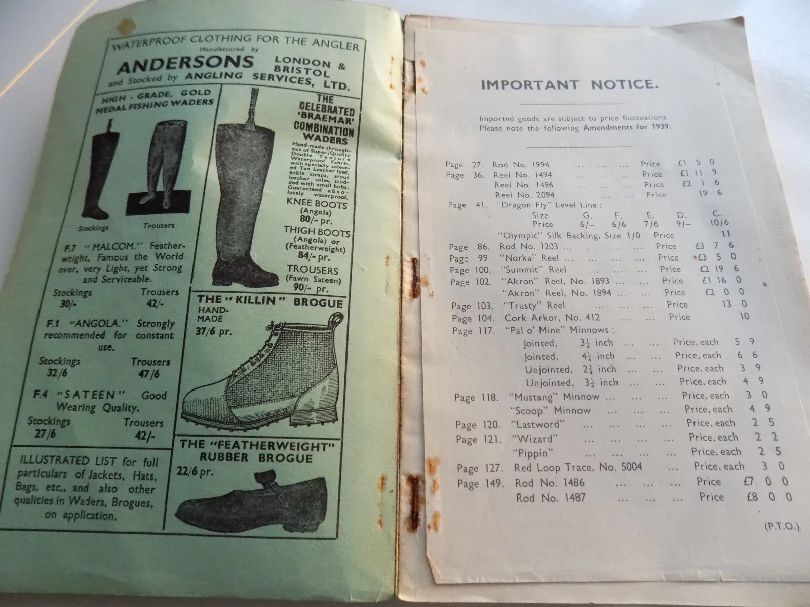 ANGLING SERVICES LIMITED. Fishing Tackle Catalogue 1939.