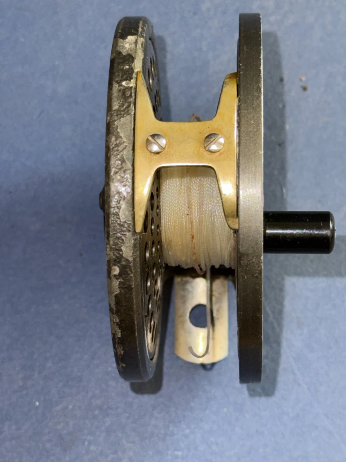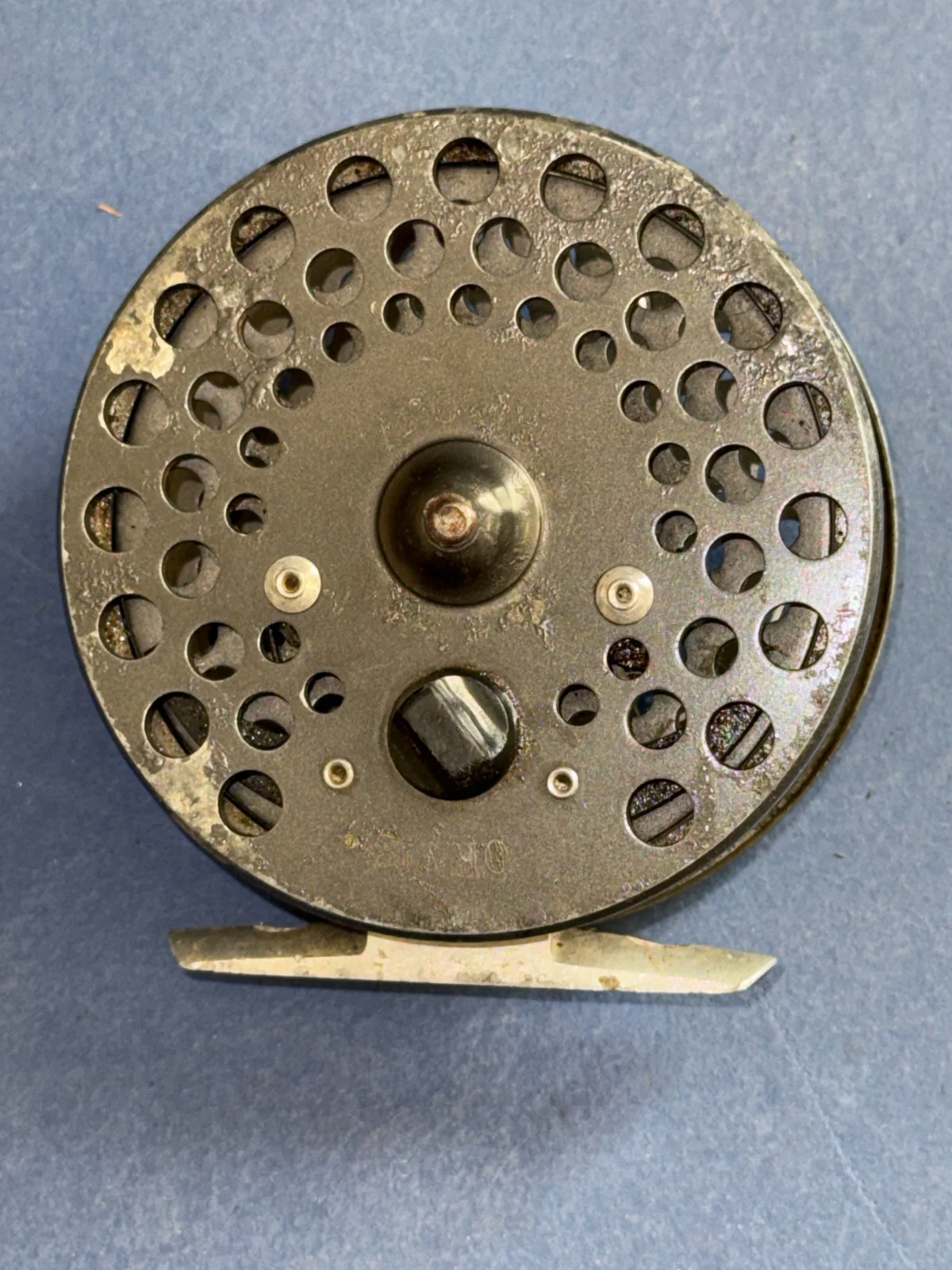 ORVIS CFO IV FLY REEL. WHILST THIS IS A GOOD WORKING REEL-IT HAS COSMETIC ISSUES, THE REEL LOOKS TO HAVE BEEN PUT AWAY WHILST WET AND THE FINSH HAS BLISTERED ON THE CAGE SIDETHE SPOOL IS IN AN OK CONDITION ( WOULD MAKE A VG SPARE SPOOL)PLEASE SEE IMAGES