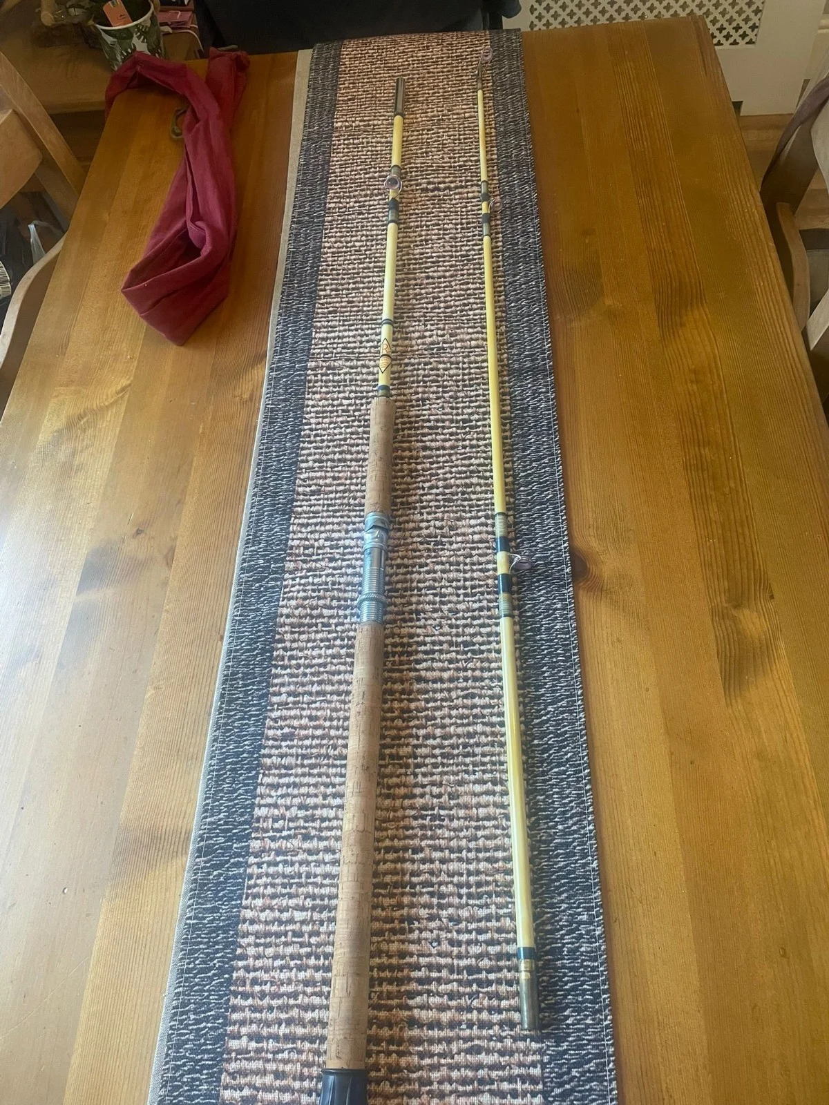 The vintage E. R. Craddock & Co Ltd fishing rod with bag is a classic piece of sporting goods from the United Kingdom. Made from fibreglass, this boat and casting rod is perfect for saltwater fishing. The brand's reputation for quality and durability ensures a high-performance piece of equipment for any fishing enthusiast. The inclusion of a bag and plastic tube transport case adds to the convenience and portability of the rod, making it a must-have for any vintage fishing collection.