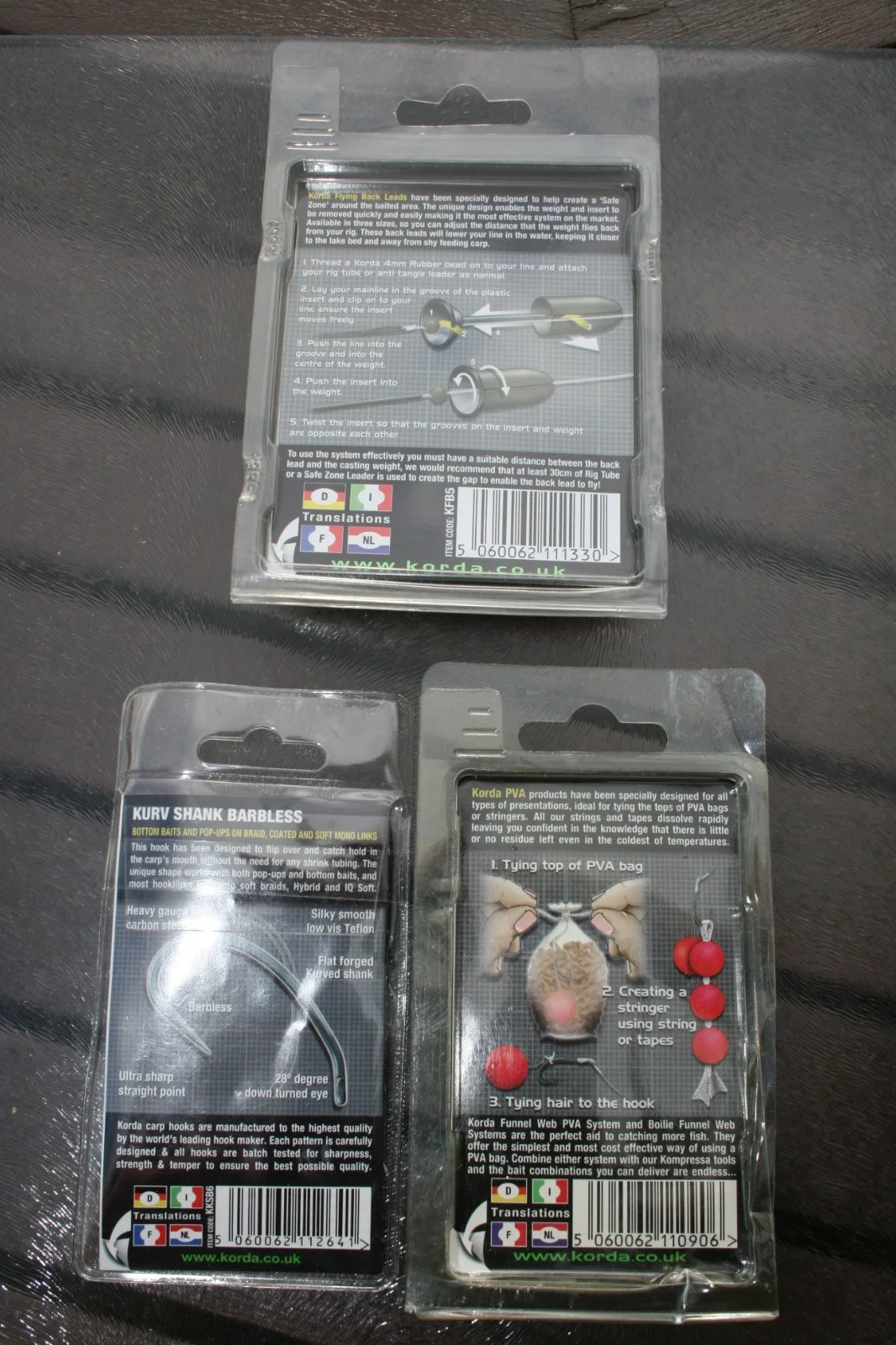 KORDA FISHING TACKLE.1 PACK OF 10 BARBLESS HOOKS SIZE 6.1 PACK OF 6 FLYING BACK LEADS INCLUDING 10 4mm RUBBER BEADS.1 PACK OF PVA STRING. 1.35mm.PRE-OWNED BUT NEVER BEEN USED.POST UK ONLY.