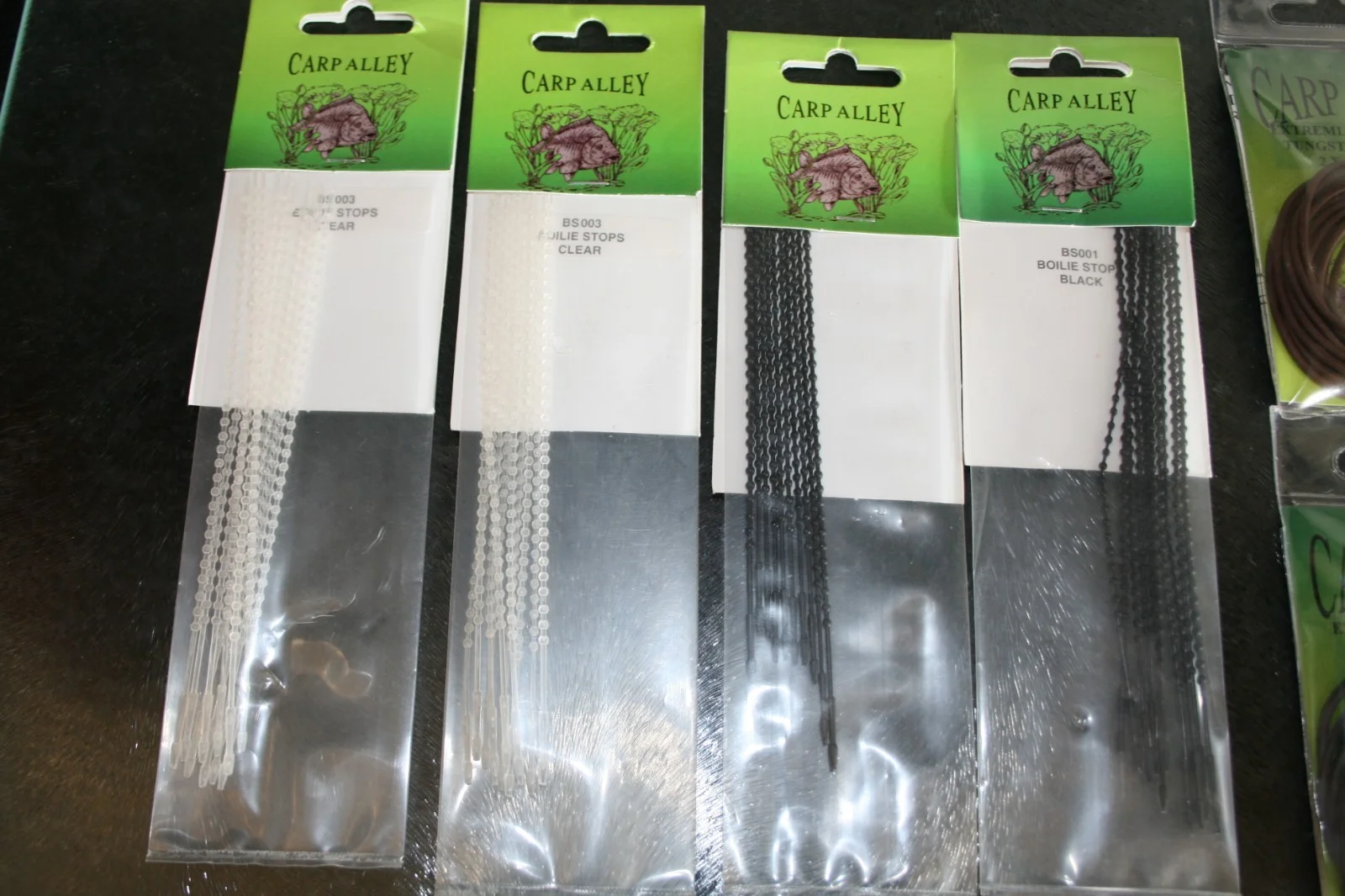 CARP ALLEY END TACKLE.2 PACKS OF CLEAR BOILIE STOPS.2 PACKS OF BLACK BOILIE STOPS.1 PACK OF GREEN TUNGSTEN TUBING.1 PACK OF BROWN TUNGSTEN TUBING.NEVER BEEN USED.POST UK ONLY.
