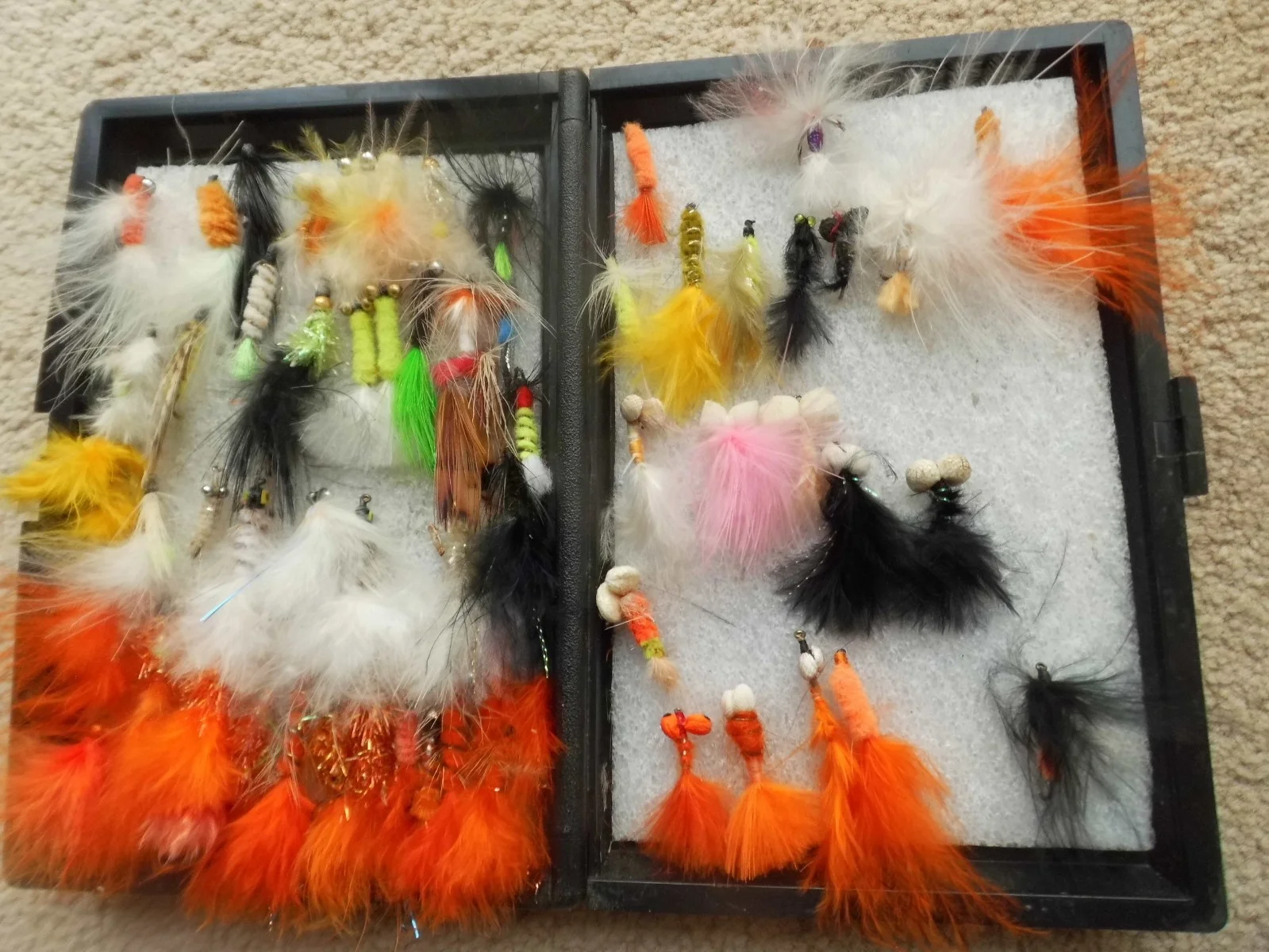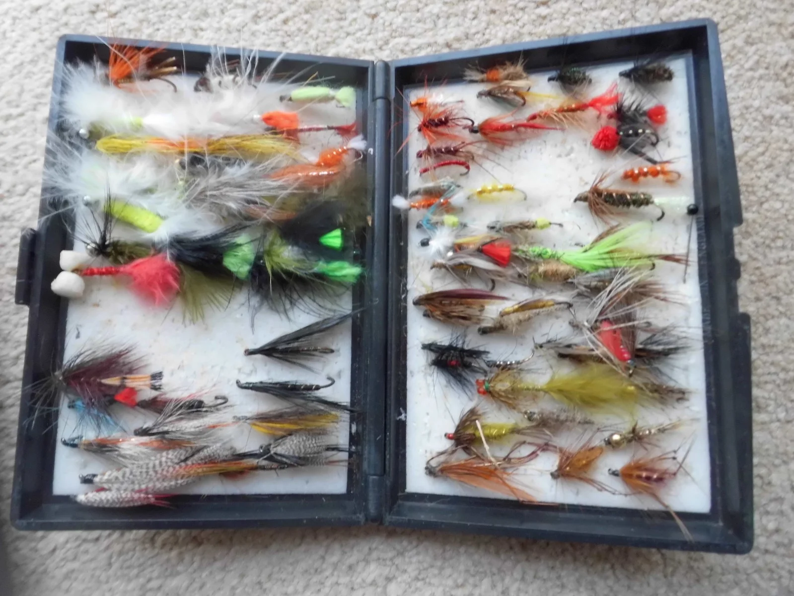 Two boxes of mixed vintage fishing flies. Over 100 in total - various sizes and types. Lengths from 1cm to 4cm. Box sizes 16cm x 11cm and 12cm x 9cm closed. Please view all the attached photographs carefully before bidding. Selling as a pair only. Posting with Royal Mail via eBay Simple Delivery. Questions and offers welcome.