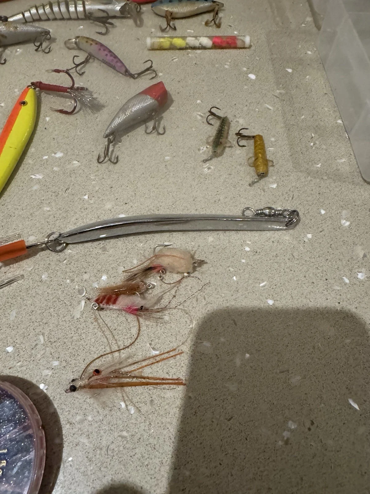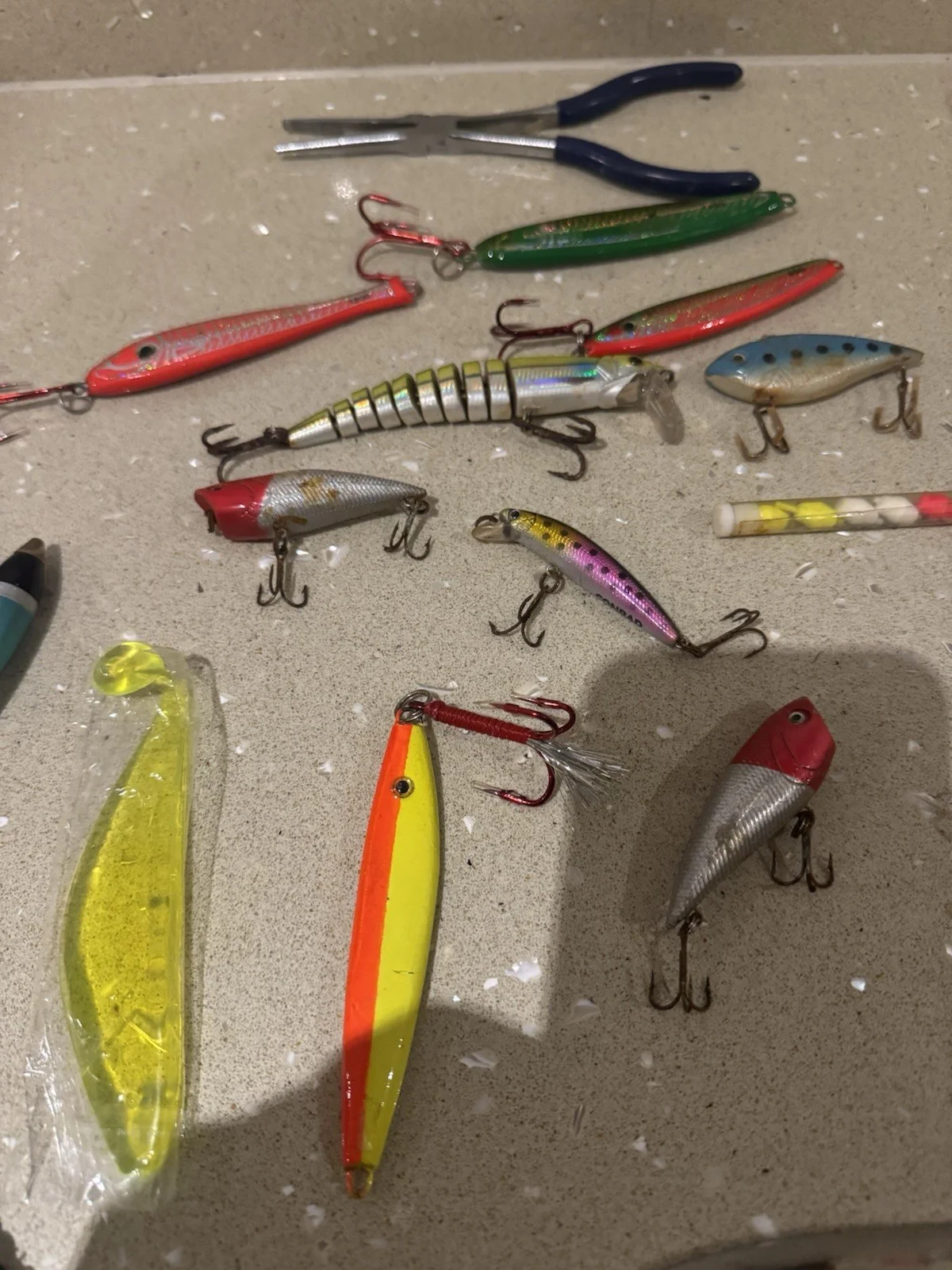 Selection Of Fishing Lures used for fishing trips in Costa Rica/ Florida And a few other hand tied flies for U.K. fly fishing.Clear out underway as fishing trips no longer viable