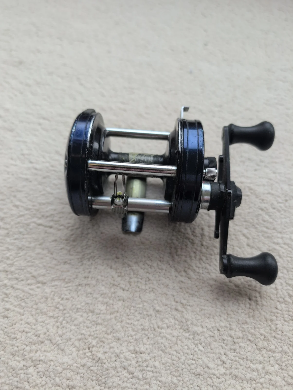 Abu Garcia ambassadeur. Unknown model number. Doesn't seem to have anti-reverse or if its meant to it is broken. Made in Sweden. Left hand wind and cast button is on the left.