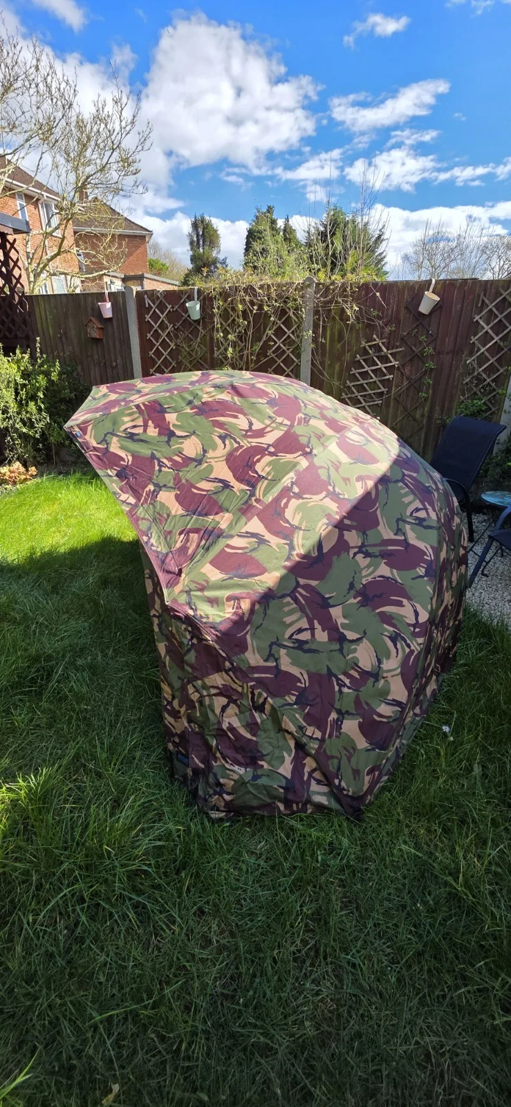 Aqua Fast and Light Mk2 DPM. The brollys main material is in brilliant condition. Been used around 10 times since new. Unfortunately some of the seams around the block and bottom of the brolly are coming undone and can see light through the material as shown in the pictures. This will probably be repairable. A shame as the brolly in general is very good condition. Thanks.