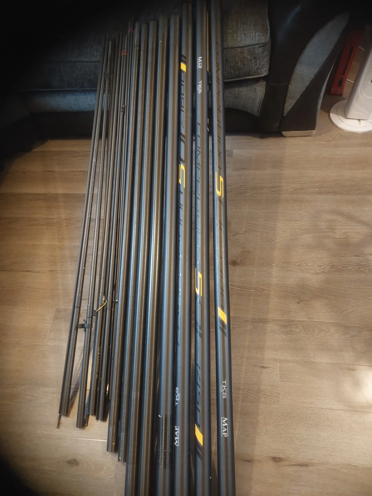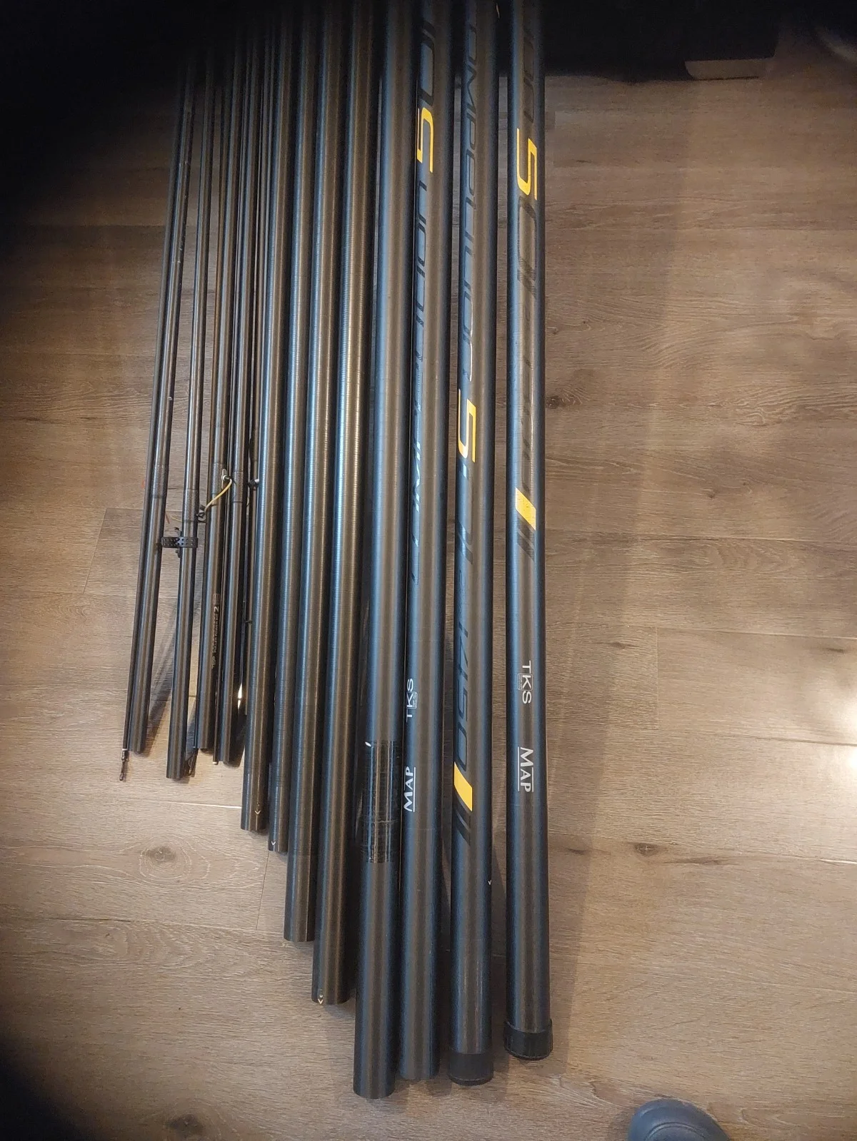 The Competition 501 TKS MAP 1450 is a high-quality fishing rod designed by MAP specifically for freshwater fishing. With a total of 7 guides, this pole is perfect for targeting all freshwater fish species. Built with precision and attention to detail, this pole is a top choice for anglers looking for a reliable and durable option for their fishing adventures. It has 7 top sections and has 1 repair on pole no. 7 has been strapped ( see pic 10 ) and 2 caps missing on storage tubes ( see pic 15 )