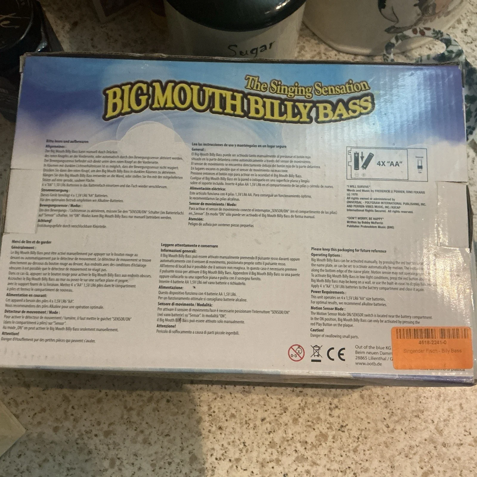 The Big Mouth Billy Bass is a novelty toy fish that sings the songs "I Will Survive" and "Don't Worry Be Happy" when triggered. This unique and entertaining product is perfect for those who enjoy novelty toys or have a love for fishing. With its striking design and humorous singing ability, the Big Mouth Billy Bass is sure to bring joy to both children and adults alike.untested