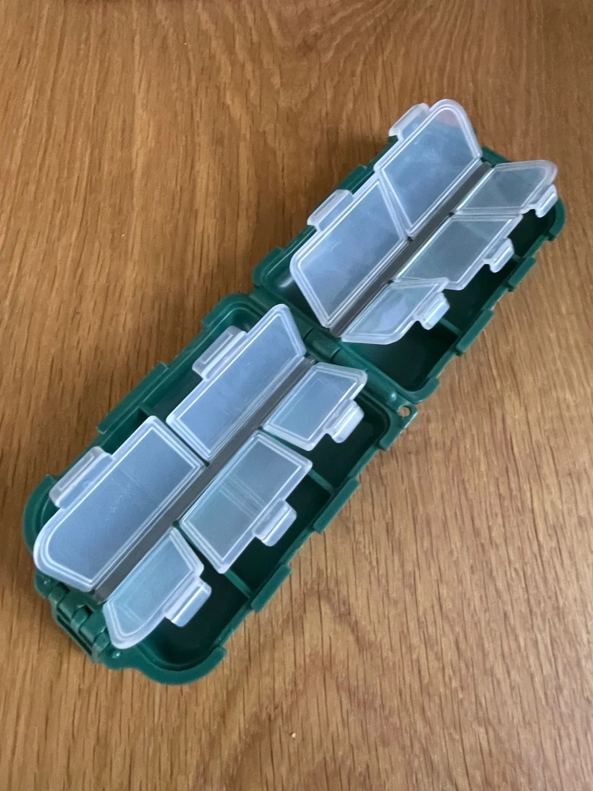 Orvis Fly Box Green Folding 10 Individual Compartments Clear Lids Pocket Sized