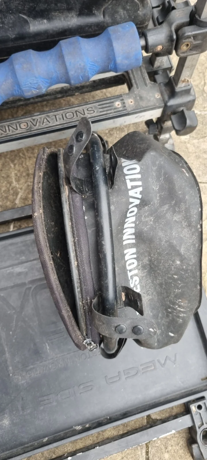 Preston Innovations fishing seat box in very good working condition comes with bait pot table top and a few other attachments some wear and tear but nothing major.Please can you look at the pictures as they are part of the description.Thanks for looking.