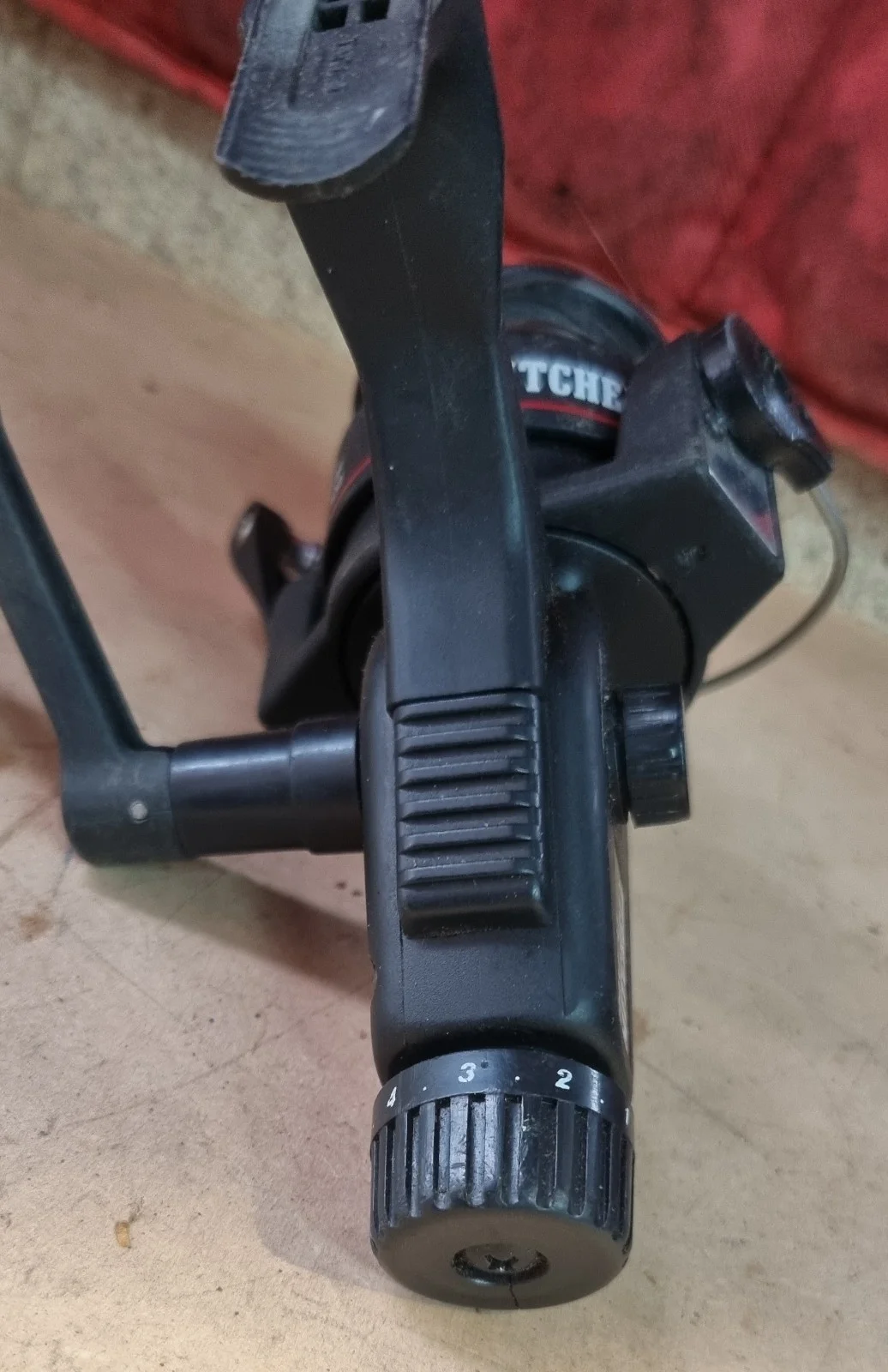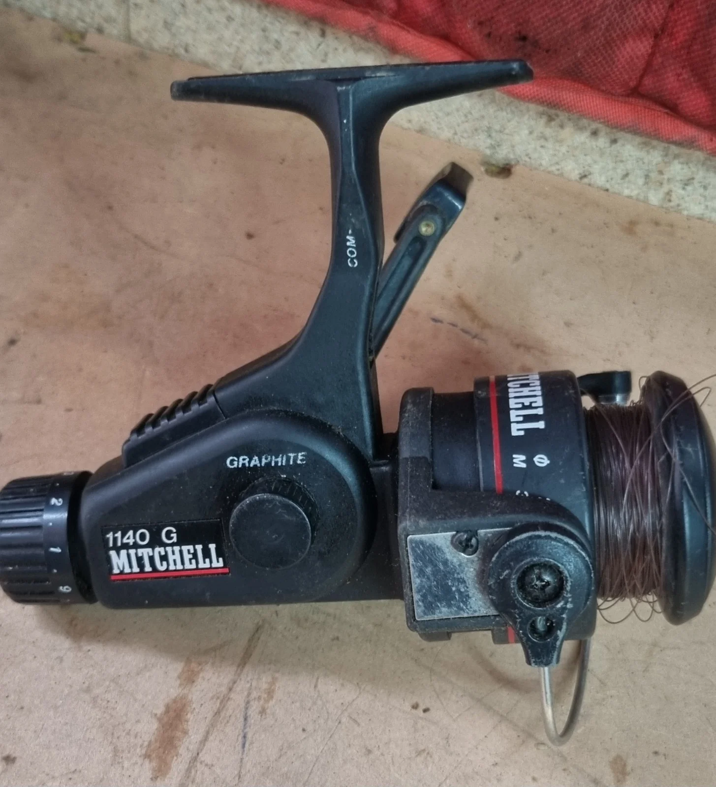 Mitchell 1140 g graphite rear drag fishing reel in used working condition has some wear and tear and a crack in the rear drag knob but still works as should comes with bag.Please can you look at the pictures as they are part of the description.Thanks for looking.