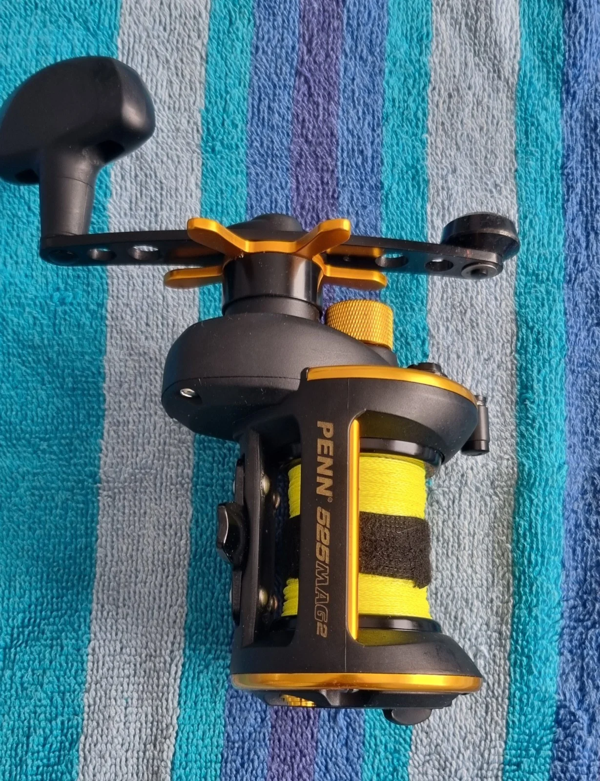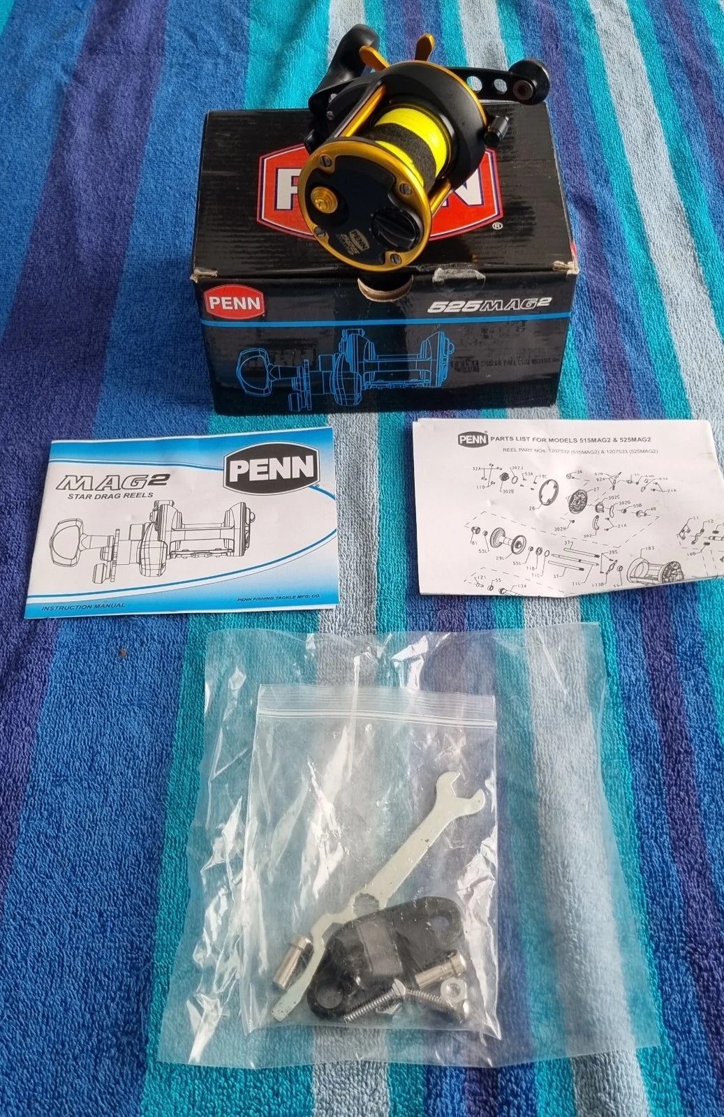 Penn 525 mag 2 multiplier sea fishing reel in very good working condition has a bit of wear and tear from use but nothing major comes with instructions tool and box.Please can you look at the pictures as they are part of the description.Thanks for looking.