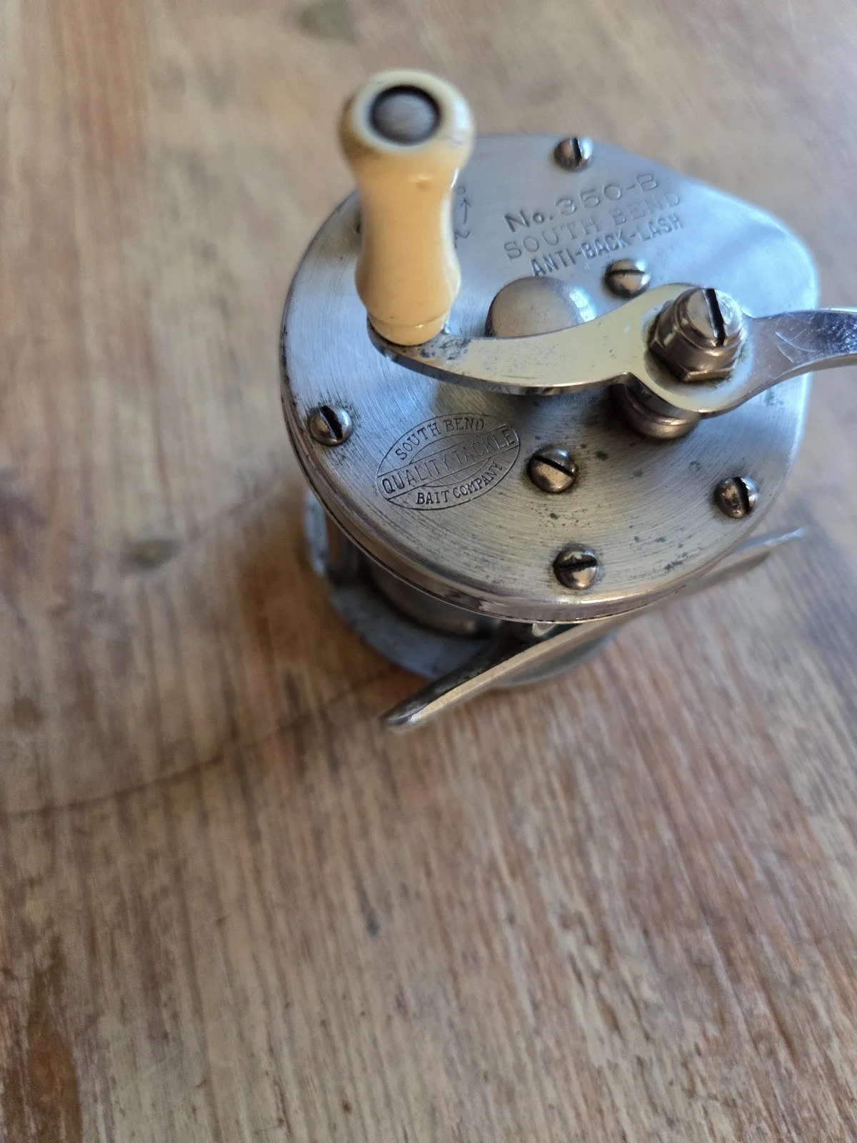 Vintage South Bend Baitcast Fishing Reel No. 350-B Freshwater.This is from my late brother’s vast collection of interesting and unusual items. I’ll be listing more over the next few weeks (or months!!) If you have any questions or would like more pictures please ask.