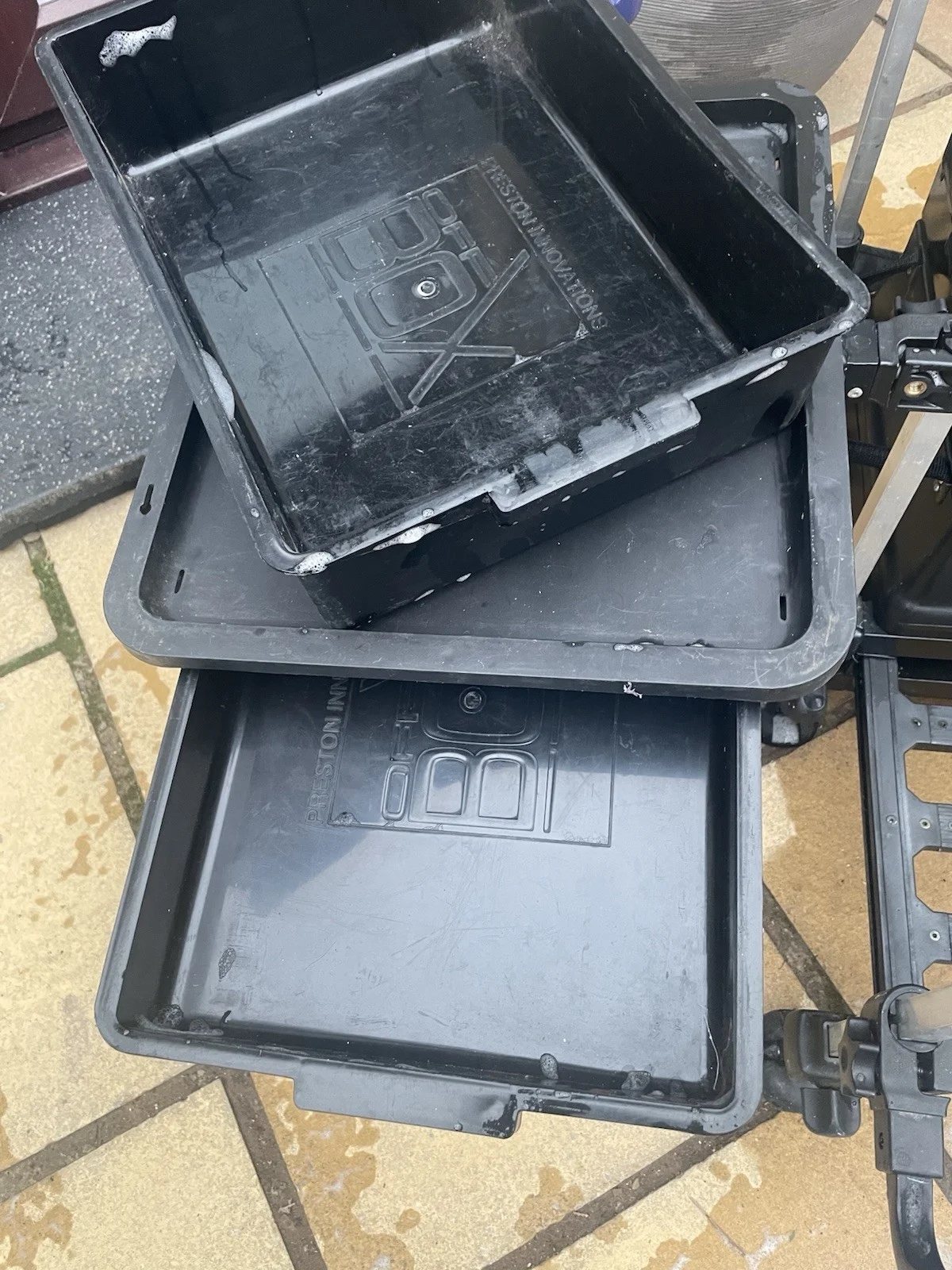Preston’s Innovation X5 Seat Box, Complete With Side Trays Pole Rest .