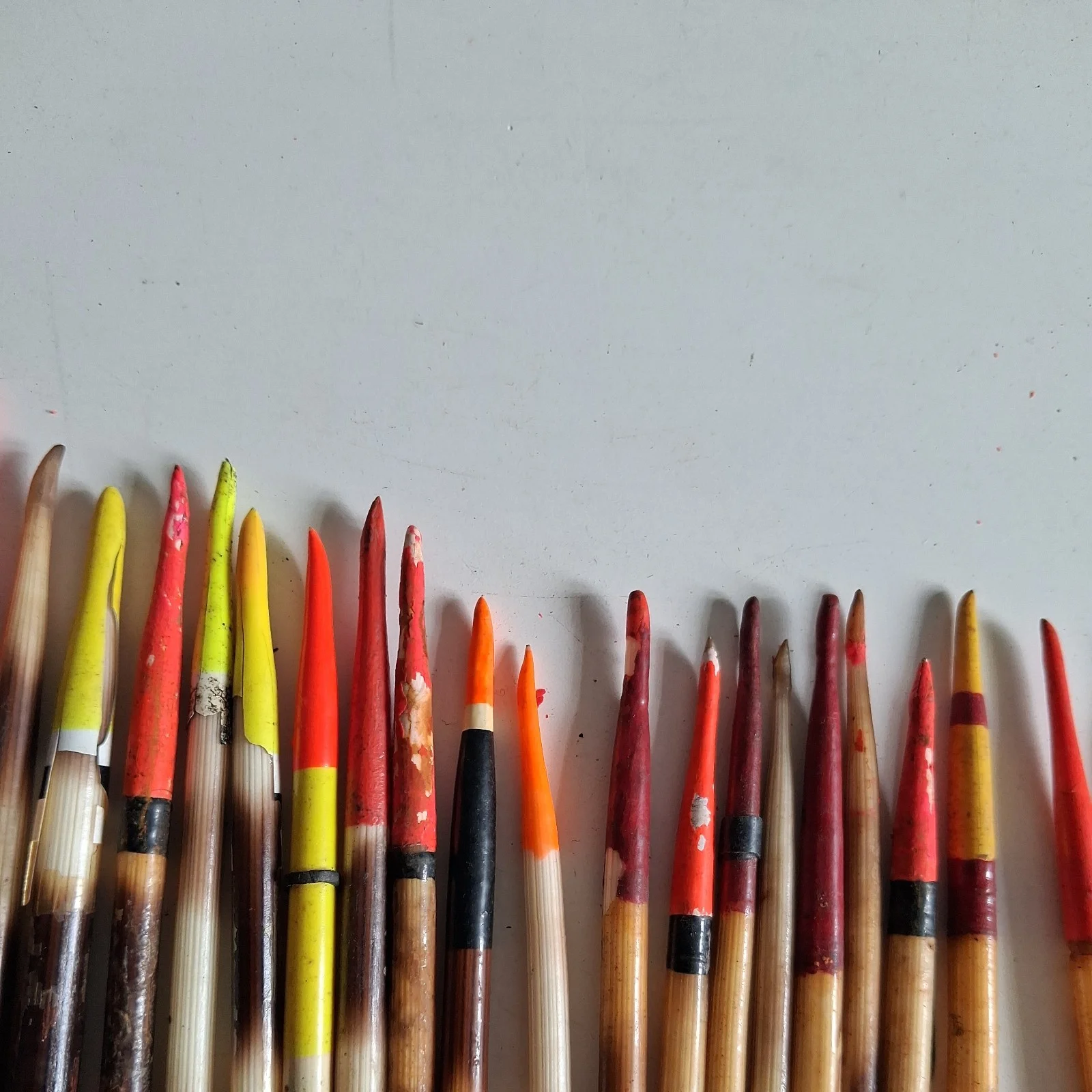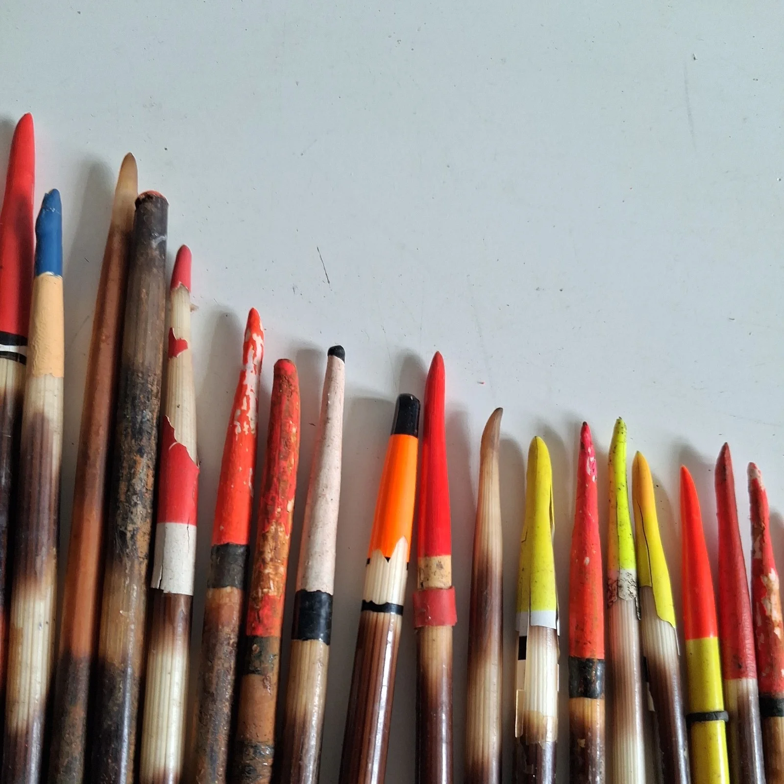 37 floats from the 1960-70s. Most have seen some action but a little sanding and paint will easily restore.