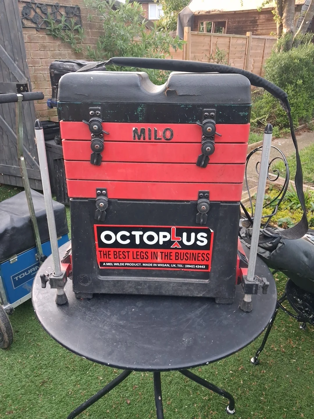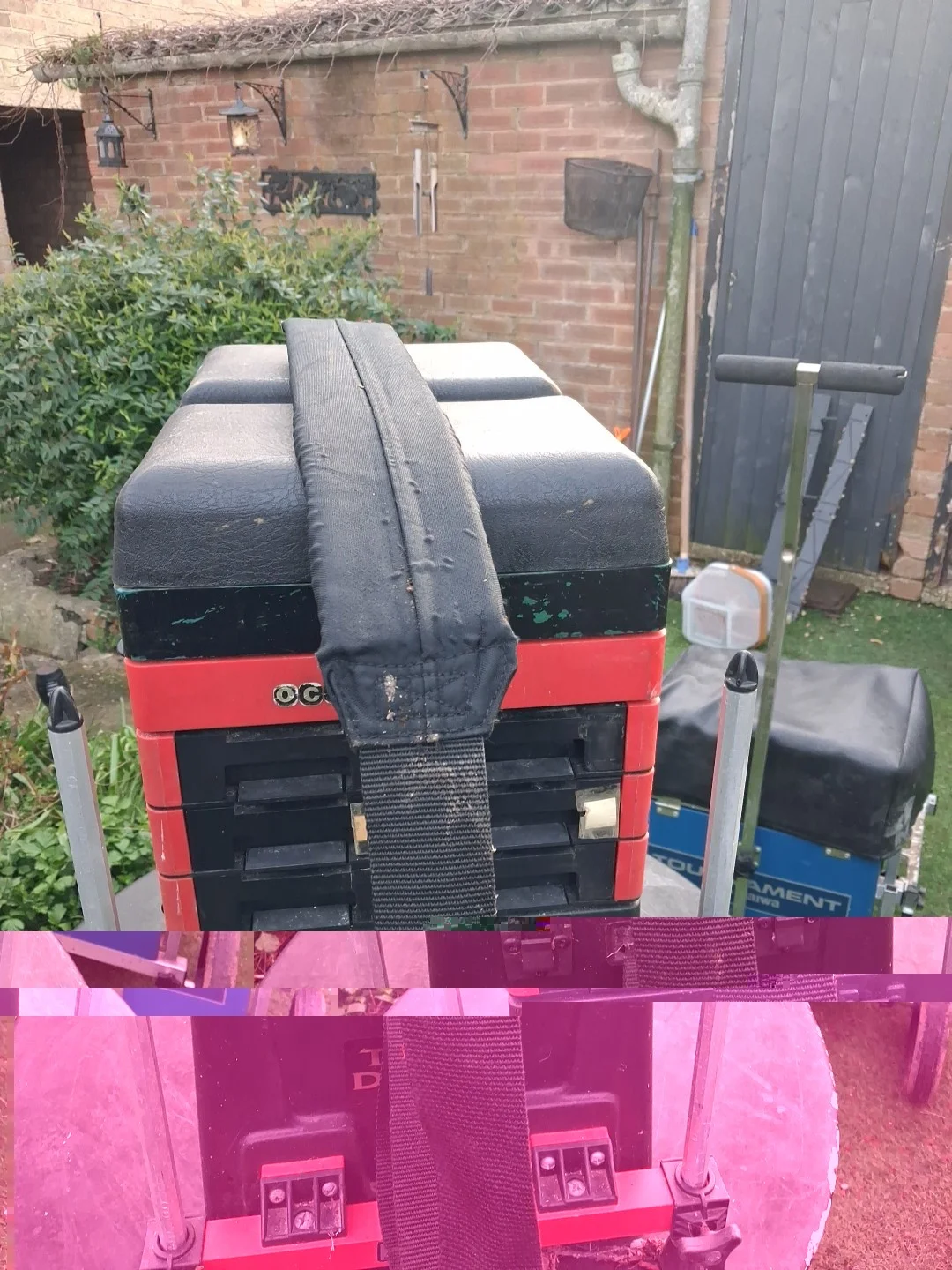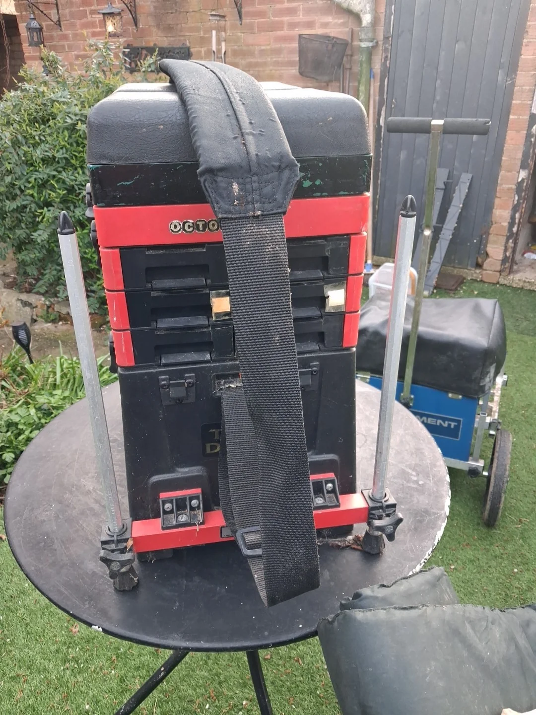 This box comes all singing and dancing. 6 draws, XL octoplus, extra winder tray, padded seat and padded strap. Downside the padded seat has a few cracks in it, please see photos.I have a black plastic (hard seat) that I'd be happy to exchange if you prefer. Please message if that is the case. Also the top section was green but at some point it has been painted black and could do with a recoat.
