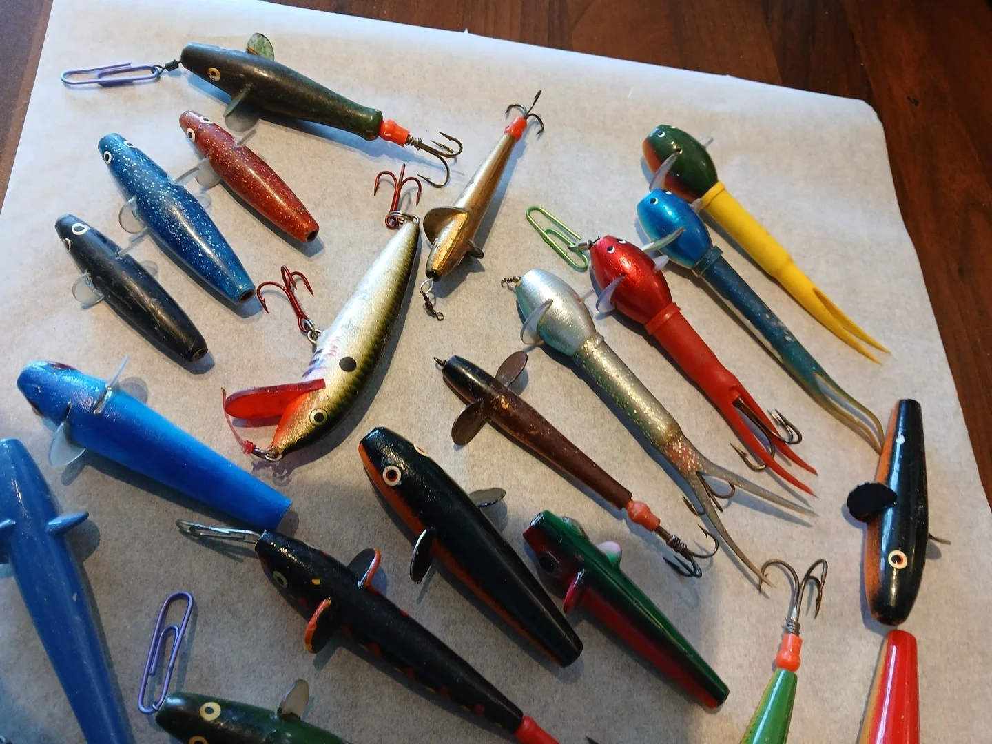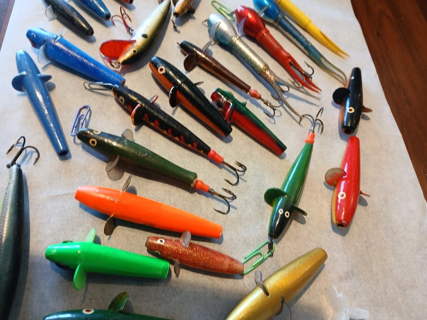 a good selection of devon minnows both floating and sinking , perfect for salmon fishing, 4 of the minnows are a sort of minnow cross flying c type lure, there are also 2 rapala lures again very good for salmon but could also be used for pike or sea bass.some of the minnows have mounts, some don't ( see photos) but you can swap the mounts around to use the bodies that haven't got mounts, there are also a few treble protectors, in all there are 24 minnows and 2 rapalas.good luck and tight lines.