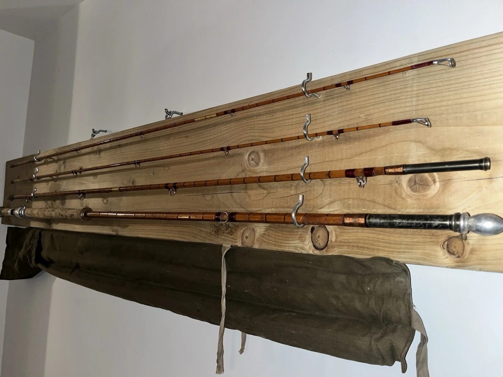 The Hardy Bros "The Wye" Palakona Salmon Fly Rod is a vintage British-made fishing rod crafted from cane. Designed specifically for fly fishing, this rod is ideal for targeting salmon. It comes with the original bag for easy transportation and storage, making it a convenient and stylish choice for any fishing enthusiast. The Hardy brand is known for its quality and craftsmanship, ensuring a reliable and enjoyable fishing experience for all anglers.This classic Hardy bros b fly rod is the 12'6" #9 and is “the wye” model. Unfortunately this rod has slight damage. The cork handle is worn down and there is corrosion to the end but making the the last digits of the serial number unreadable, also the first line guide ring is missing and the is marks/stains on various areas of the rod of which is repairable. It comes with the original bag and 1 original Hardy bros end stopper. The windings are in good condition and the rest of the condition is fair. The rod will be shipped in pvc tube for added protection Please check other items