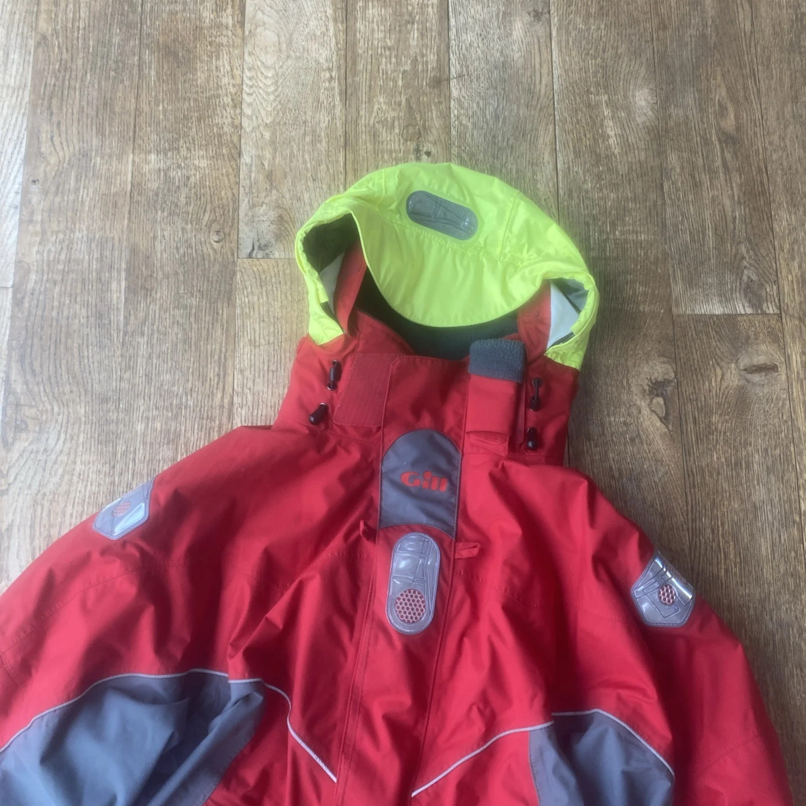 GILL OS5 OFFSHORE SAILING JACKET RED Size L Waterproof BreathableUsed but in very good condition. Very faint mark on right hand pocket and Gill badge on right sleeve and back starting to fade. Other than that, likenew. Fleece lined pockets designed to warm and dry hands and waterproof zip pockets for valuables. Crafted for the offshore and coastal adventurer, the Gill OS5 Coastal Sailing Jacket offers a blend of functionality and style. This large-sized, hooded jacket is designed with breathable, waterproof materials including nylon, polyester, and mesh, ensuring protection against the elements for water sports and fishing enthusiasts.Reflective features enhance visibility, while the durable zip closure provides a secure fit. With every detail considered, the GILL OS5 is a trustworthy companion for your maritime pursuits.Boat now sold so surplus to requirements. See other sailing gear items for sale. From a non smoking, pet free household