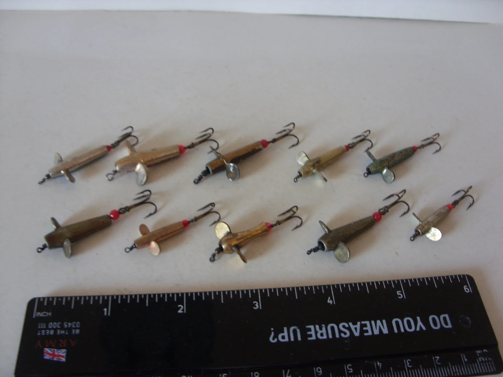 10 LITTLE DEVON MINNOW LURES + MOUNTSFor sale I have 10 small size metal Devon's in good used condition.All have good hook mounts and the body sizes are approx:7 x 1 inch and 3 x 3/4 inch.Take a look at the other fishing items I have for sale on ebay.Any questions please feel free to ask.::::::::::::::: U.K. BIDDERS AND POSTAGE ONLY ON THIS ITEM :::::::::::::::I will post using Royal Mail Tracked 48.