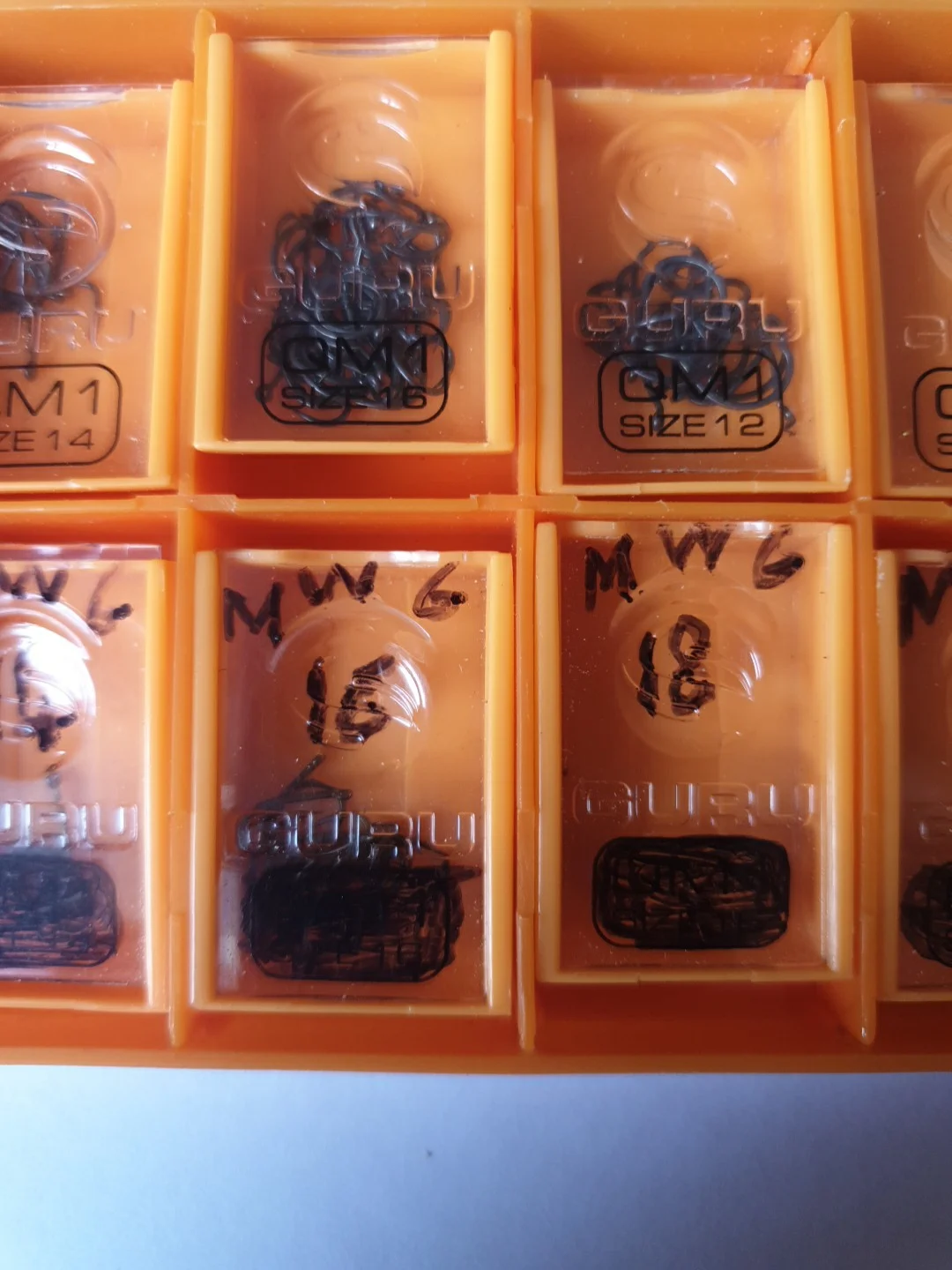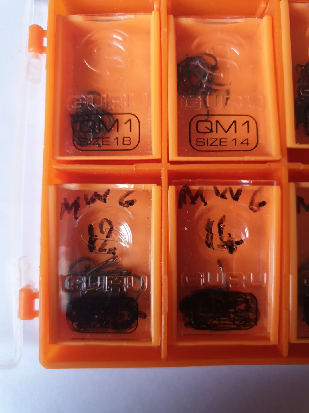 Guru Hook box Holder + Loads of Guru Hooks QM1 MWG 12, 14, 16, 18 Fishing