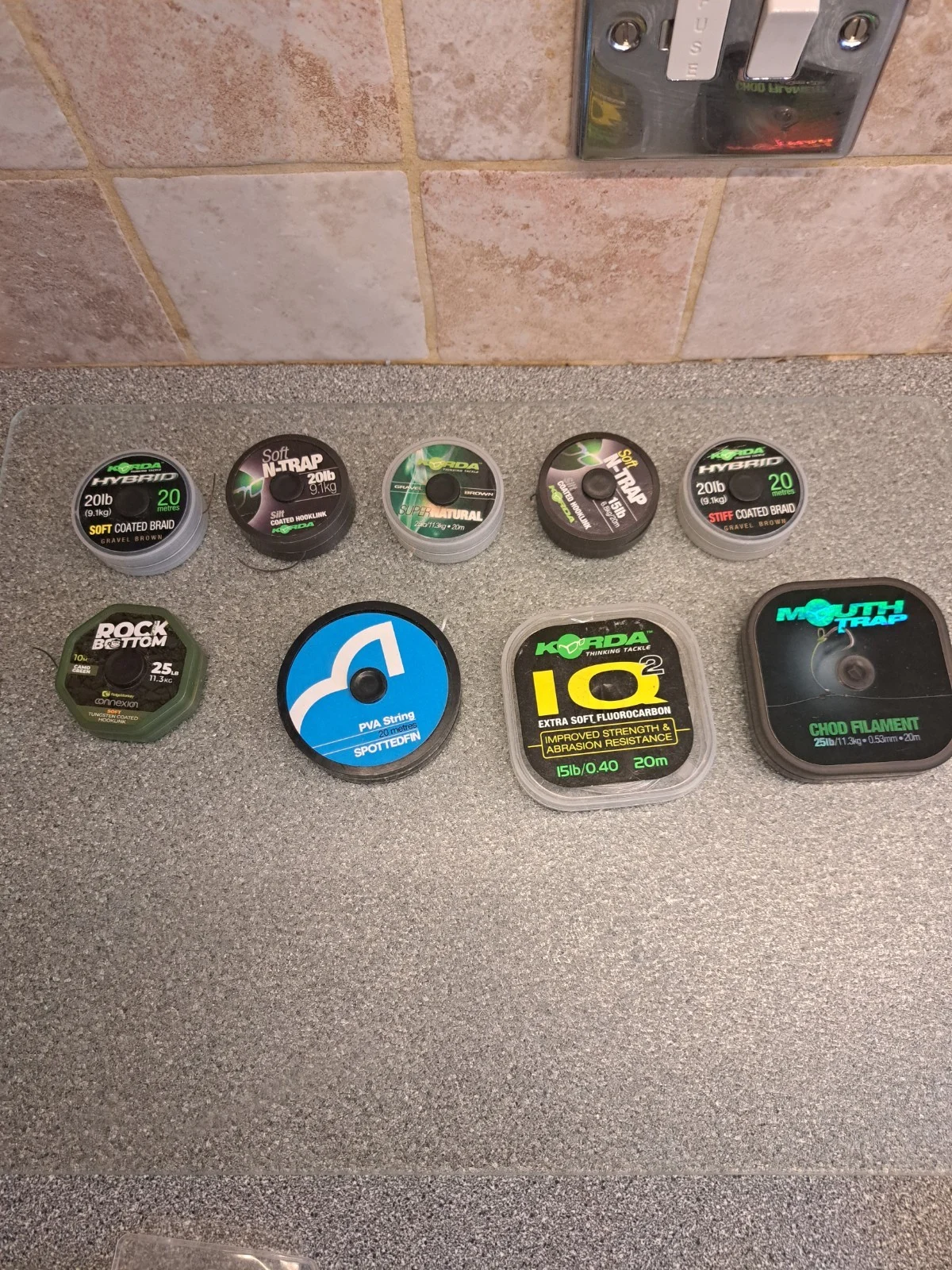 Trakker xl pouchLots of korda coated braid wich retail at £15 each,other brannded coated braid,hooks, leds, fox spod, marker floats, surface floats, and other bits and peices, most bits brand new