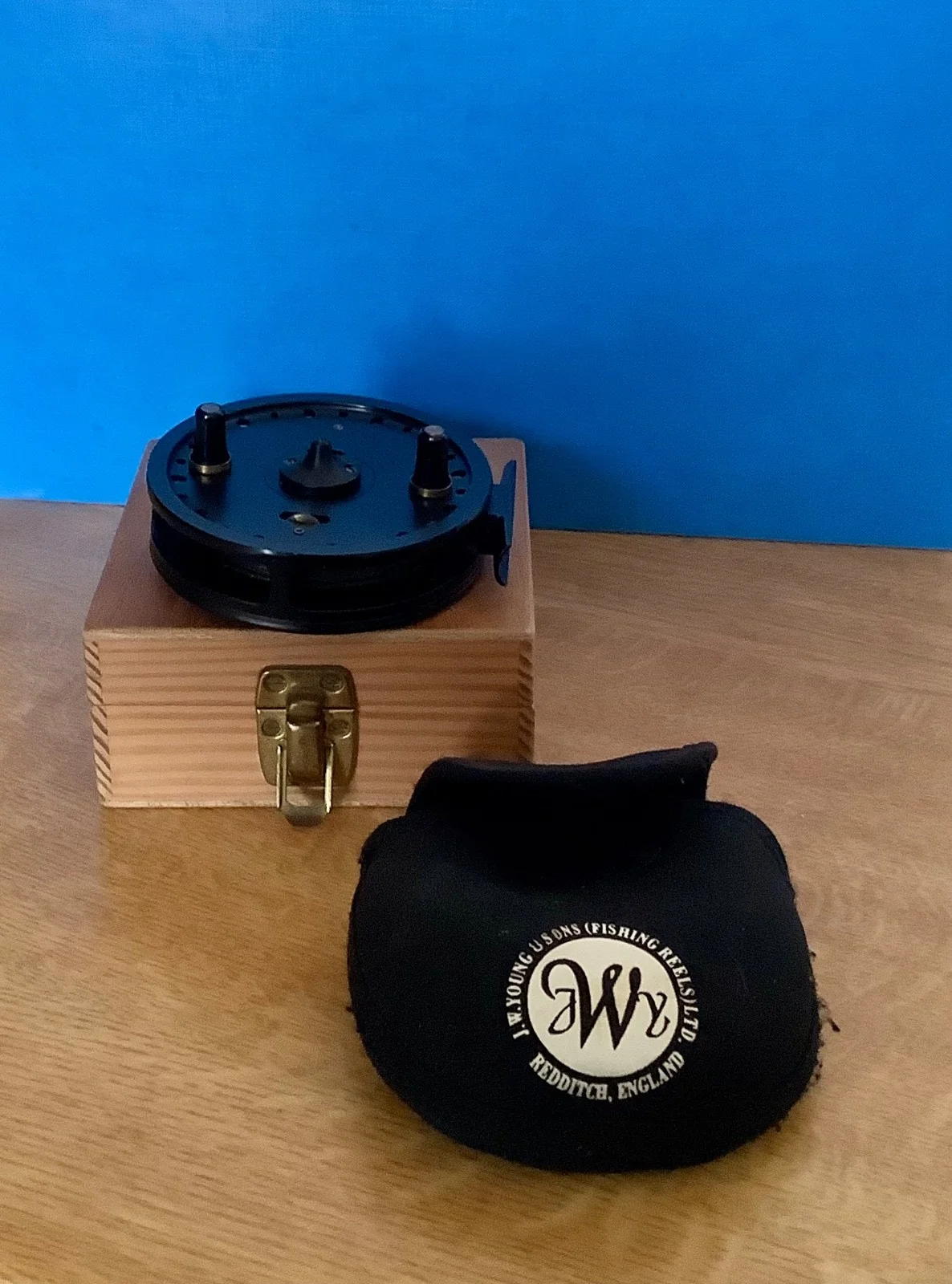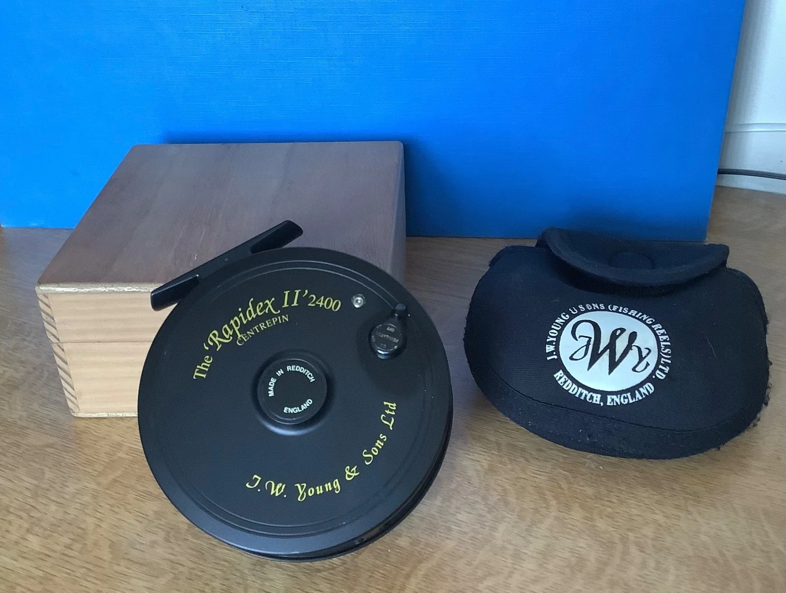 J. W. Young ‘Rapidex II’ 2400 Centre Pin Reel.Included is a Young’s neoprene reel pouch and a protective pine box with catch.Box made by retired master shipwright.4” reel.Spins well, no wobble.Reel foot as original condition, clear graphics to rear.Rarely used so in excellent condition.See images.Post with Royal Mail.UK only.