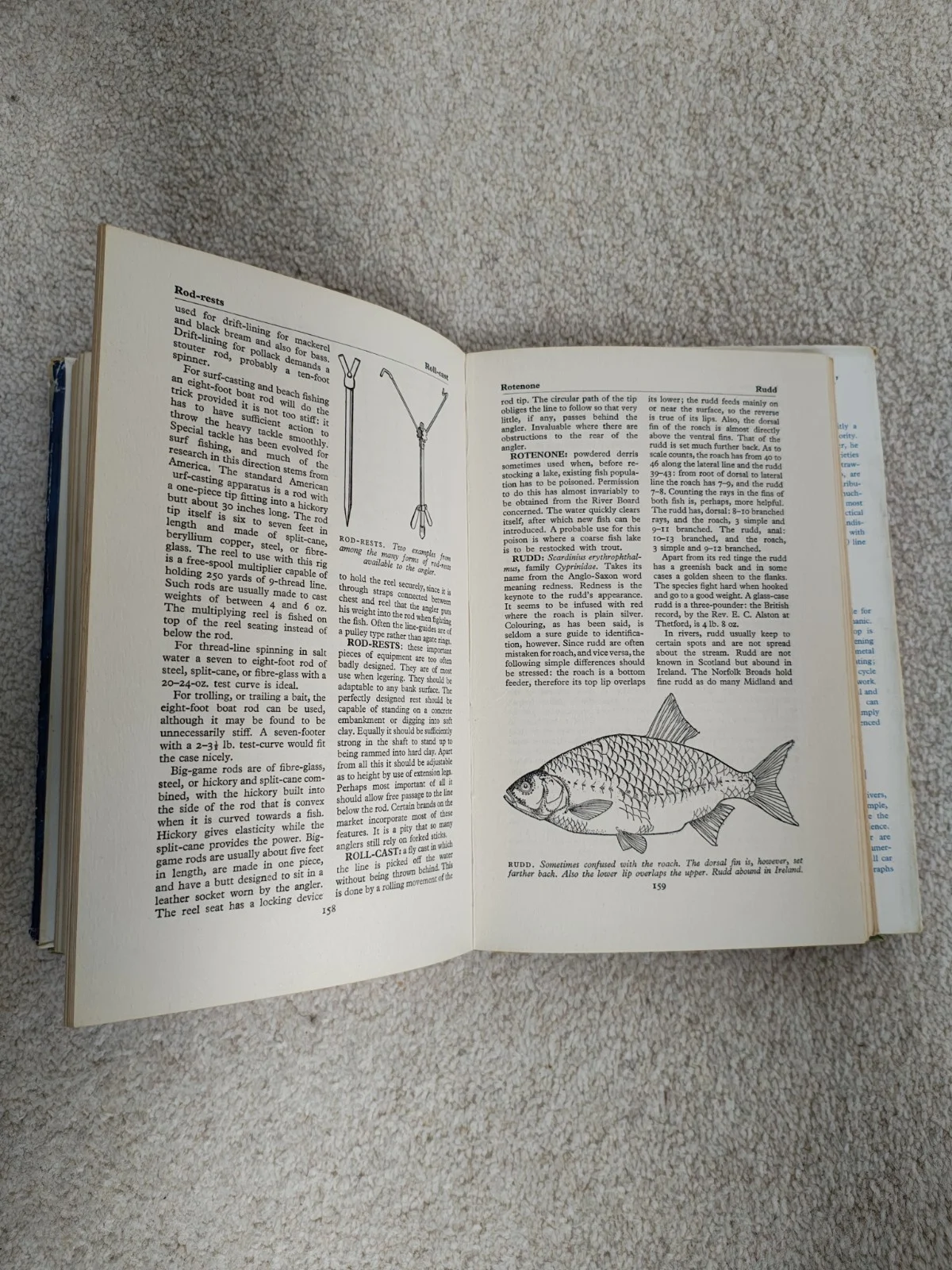 "The Anglers' Encyclopedia" by Colin Willock hardback is a vintage fishing guide specifically tailored for saltwater anglers. This comprehensive encyclopedia is a valuable resource for fishing enthusiasts looking to enhance their knowledge and skills in the sport. With a focus on saltwater fishing techniques and strategies, this book provides insights and advice for anglers seeking to improve their chances of a successful fishing experience. Whether you are a seasoned angler or a beginner looking to learn more about the sport, "The Anglers' Encyclopedia" is a must-have addition to any fishing enthusiast's collection.The outer cover is very worn the main book is in good condition. There is writing on the inside cover as it was a gift.