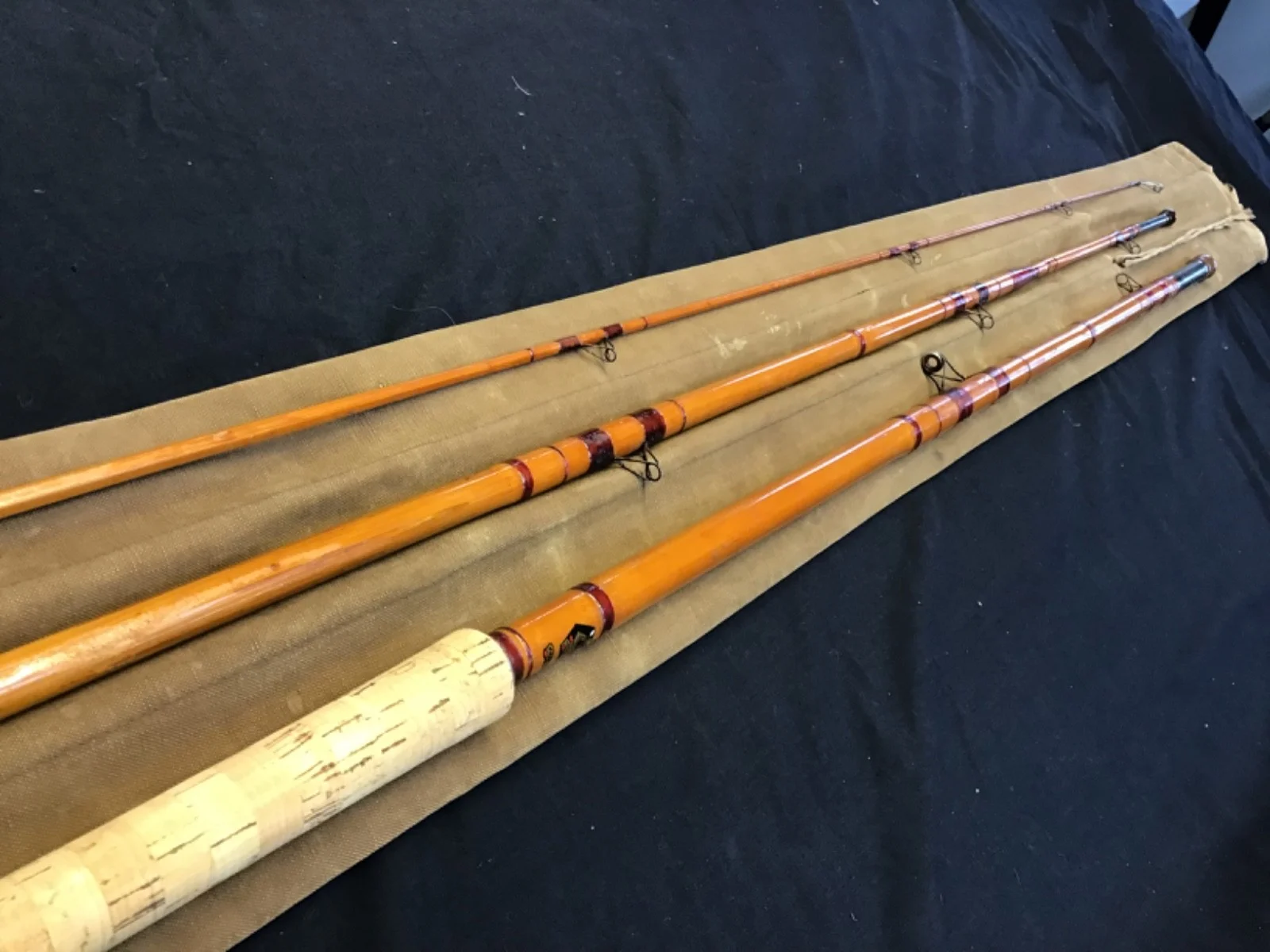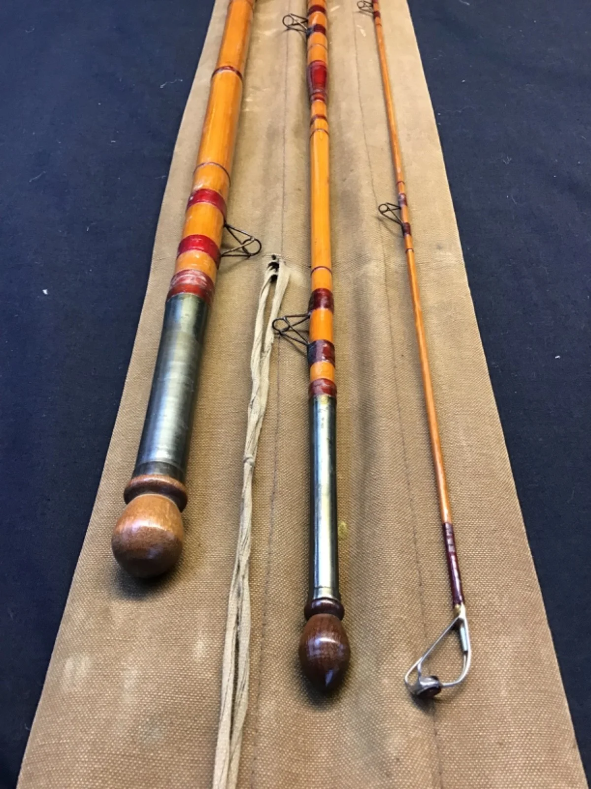 Rare early Milwards “Matchcraft” 14ft 3 piece whole and split cane Avon Rod and