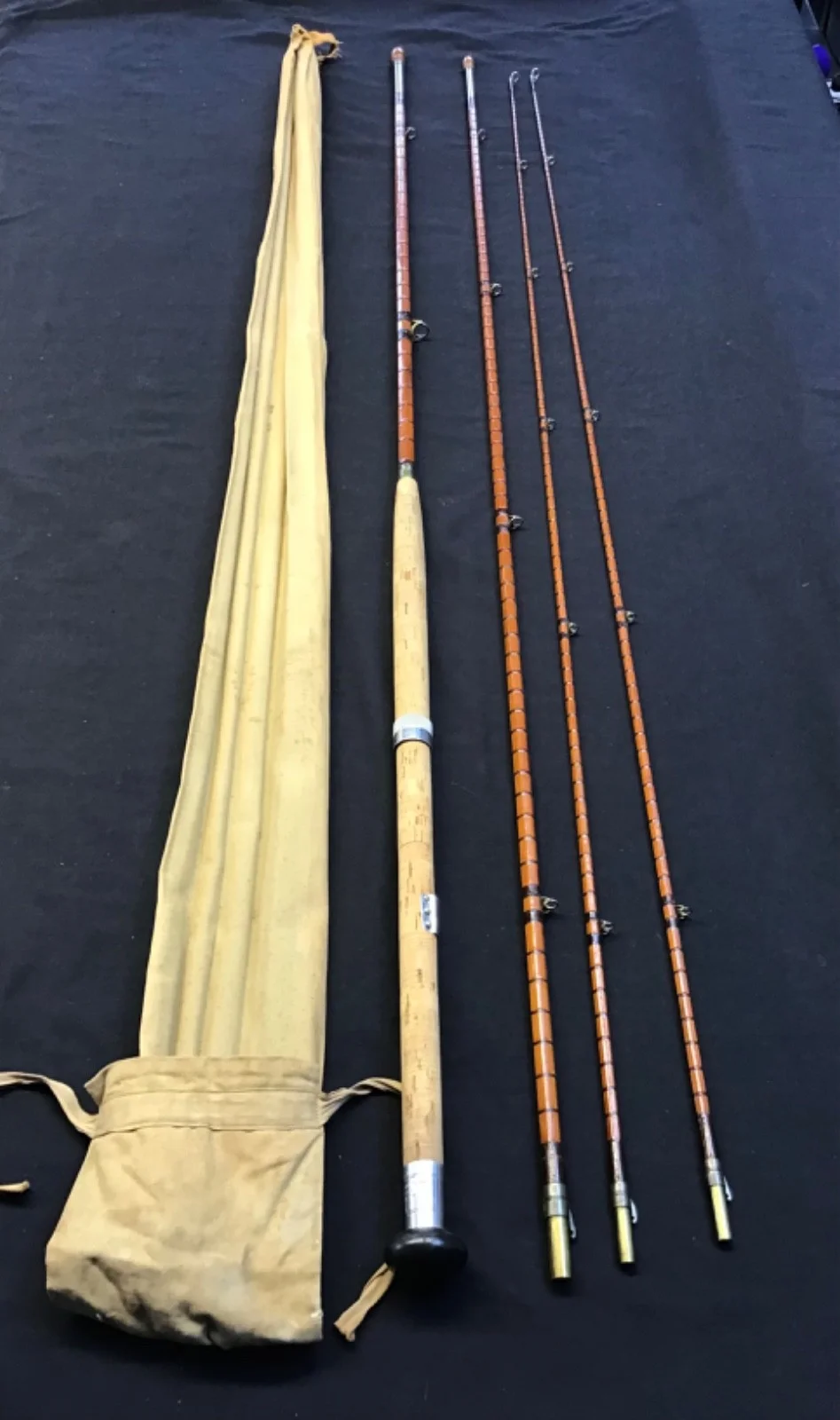 Vintage J J S Walker “Salmon Rod” 13ft 3 piece (plus spare tip) split cane Fly R
