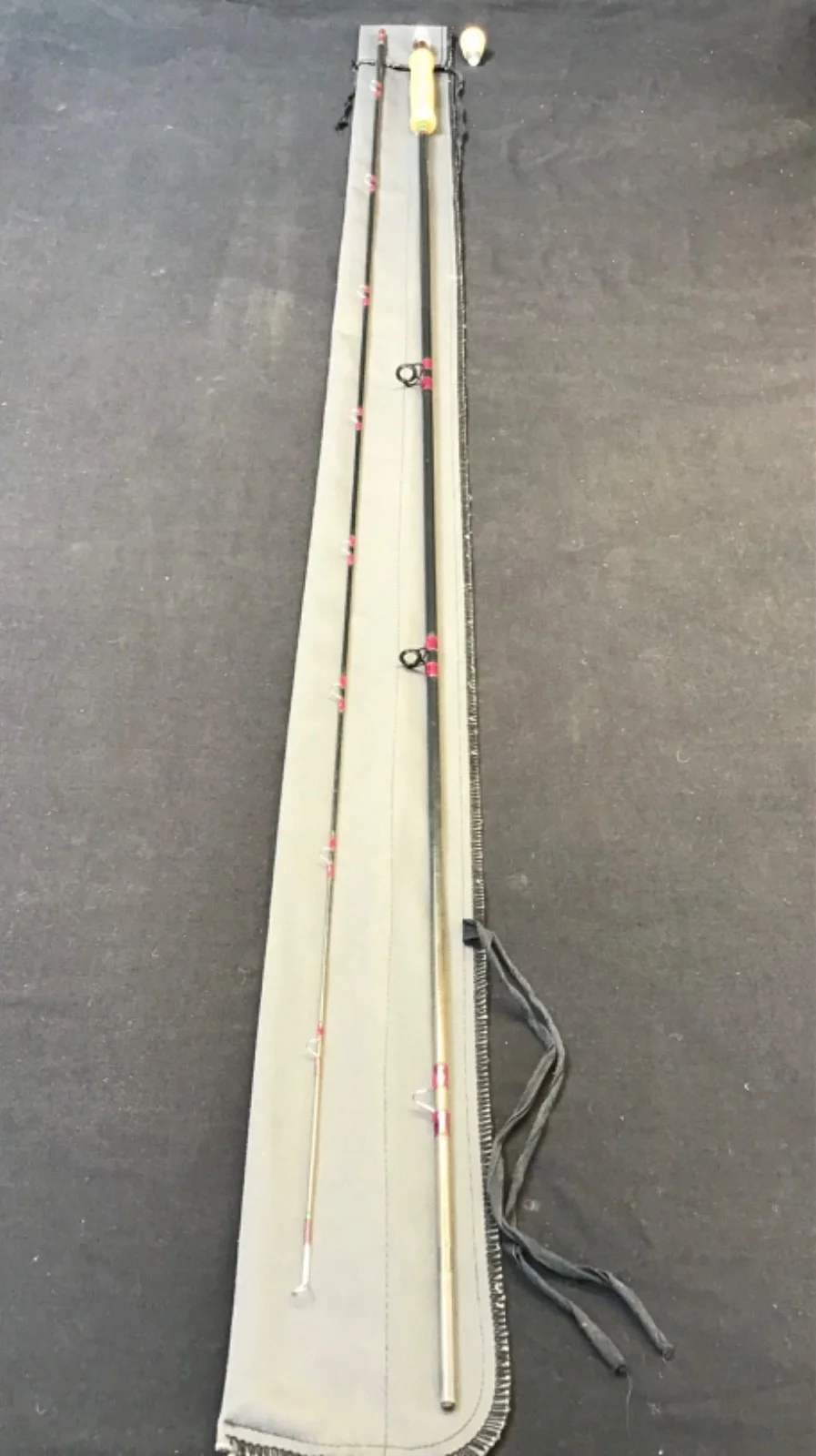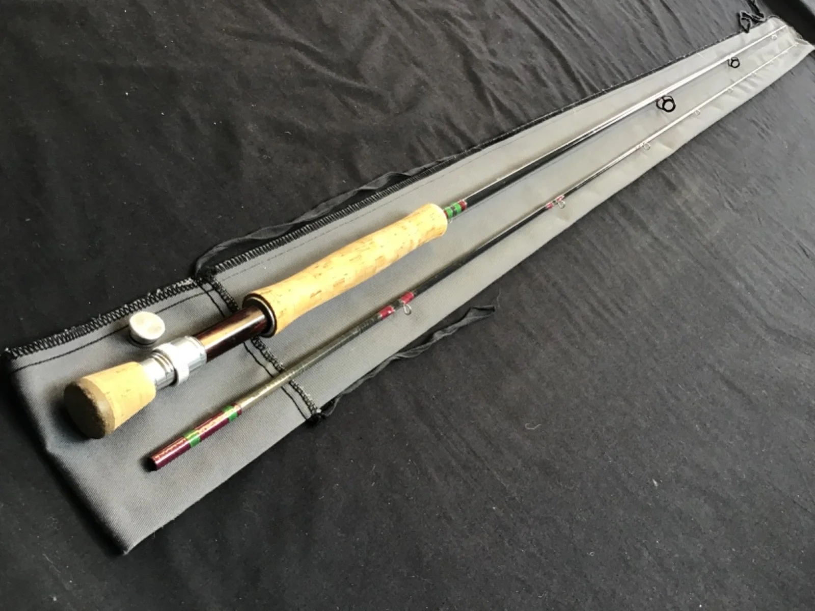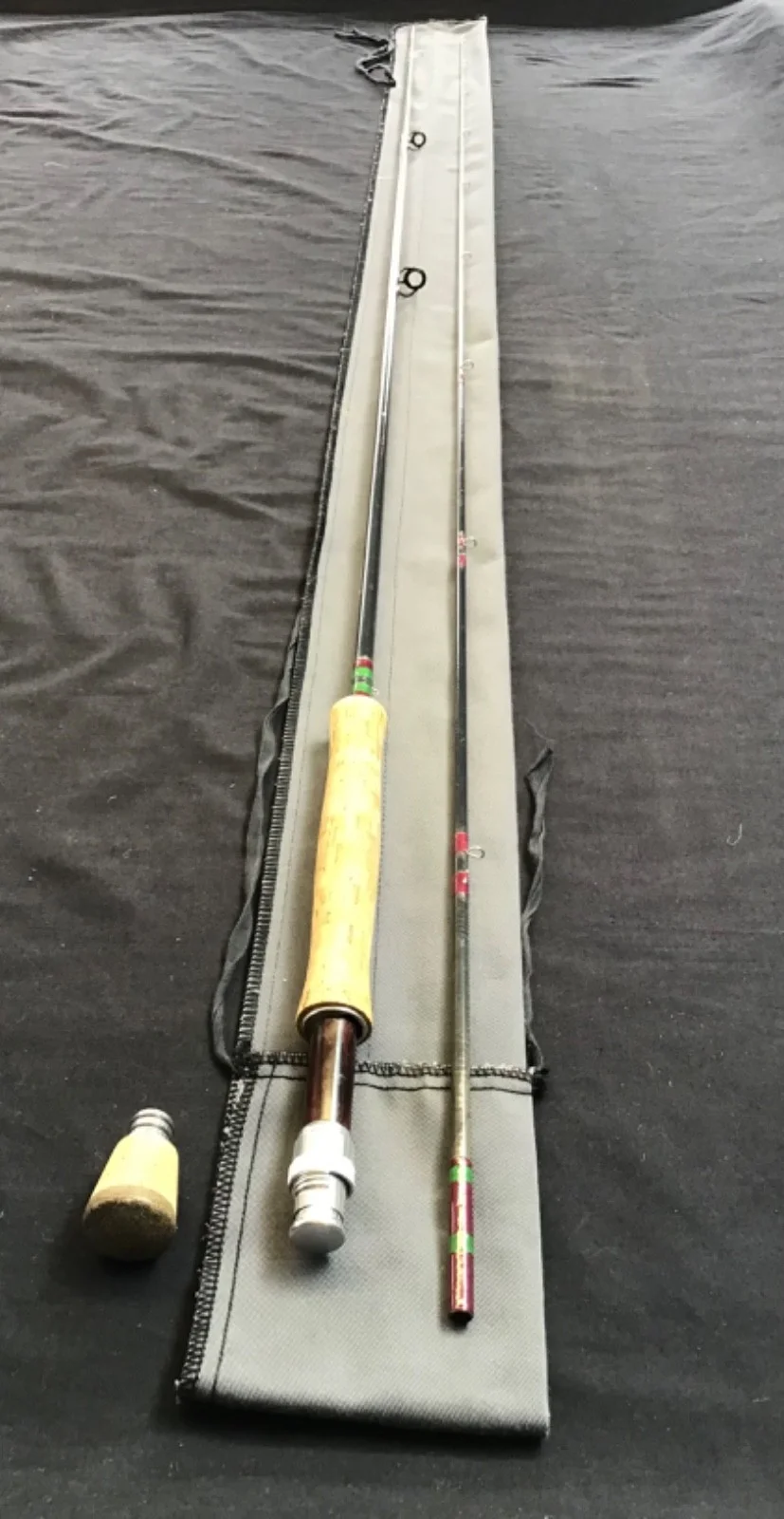 Rare vintage Hardy “Fibatube 125” 10ft #7, 2 piece fibreglass Fly Rod in excellent condition. Charcoal blanks, burgundy whipped snake eyes, lined rings, a cork handle with up-locking reel seat and removable cork mini butt. This rod comes complete with replaceable butt cap and an unbranded twin pocket grey cloth bag.Un - assembled length 160cm. 582