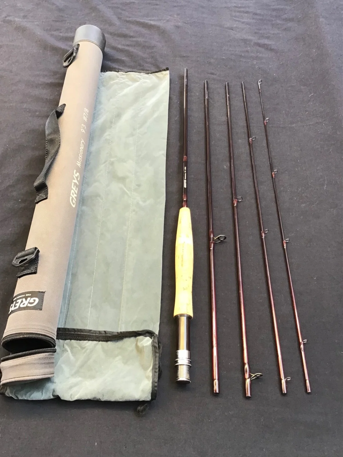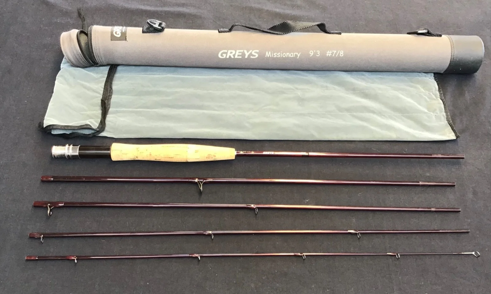 Vintage Greys “Missionary” 9ft 3” #7/8, 5 piece carbon fibre Fly Rod, bag and tu