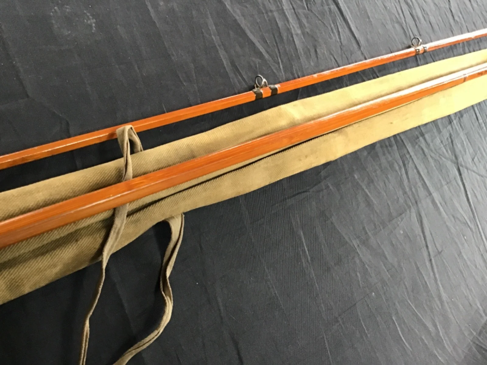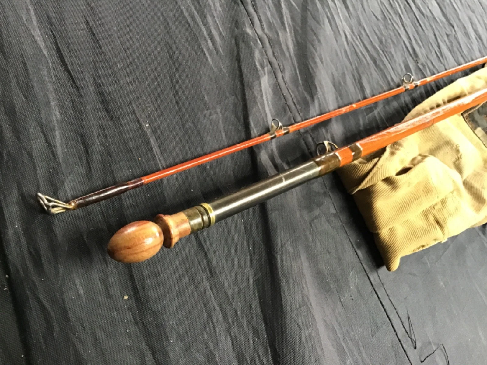 Vintage 1951 Hardy Bros (Alnwick) split cane fly rod, Rod No. E79078, 9’3″ two-piece. Crafted in England and originally made for Åke Dahlberg. This classic bamboo rod features original cork handle, metal hardware, and canvas rod bag with Hardy label. Excellent collectible condition with typical age wear (see photos). Ideal for display or restoration. A superb example of mid-century Hardy craftsmanship.This comes in the style of a C C De France model
