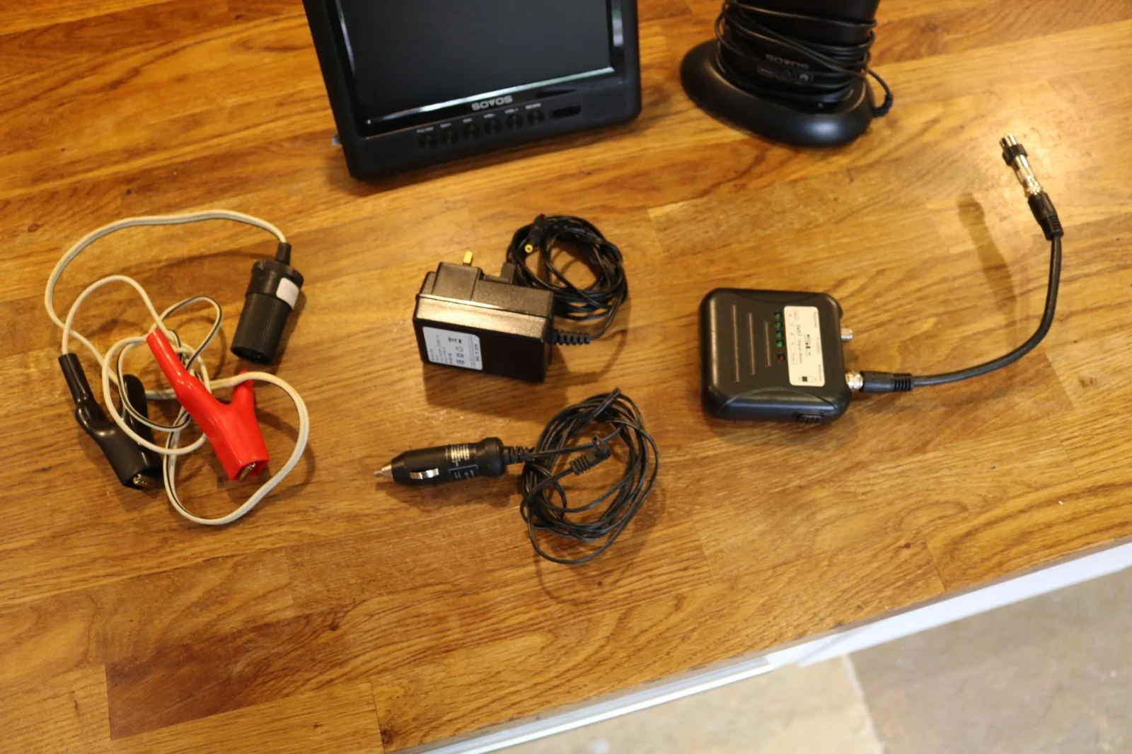 SOVOS 7" PORTABLE DIGITAL TV + ARIEL FISHING 12V PLUG & ADAPTOR CAMPER VAN
