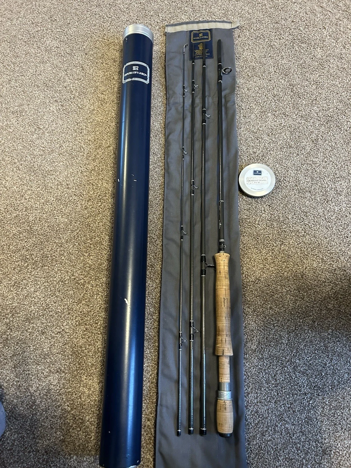 The Hardy Ultralite 9’6” #7 Fly Rod is a vintage piece perfect for fly fishing enthusiasts. Made with a graphite shaft and aluminium oxide guides, this rod offers durability and precision for your fishing adventures. It comes with a bag for easy transportation and storage, making it a convenient addition to any angler's collection. Upgrade your fishing experience with this classic Hardy rod, ideal for those who appreciate both quality and tradition in their gear.