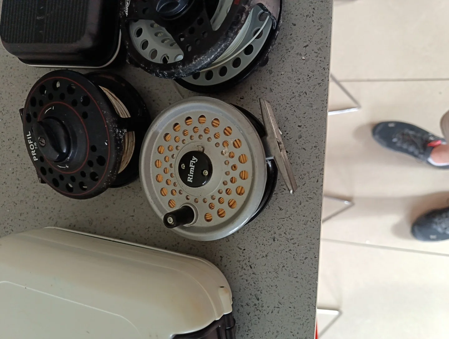 For sale is 3 fly reels rimfly, leeda profile 7/8 and Airflo switch 7/9. Airflow black case with lots of flies and a white airflo double sided case with lots of flies,. Please look at all the pictures what you see is what you get. Thanks